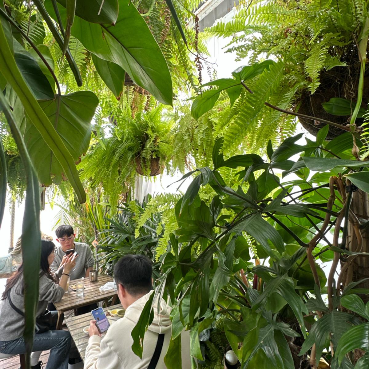 The store is full of green plants and is very comfortable, but the space is too small and feels a bit oppressive.
