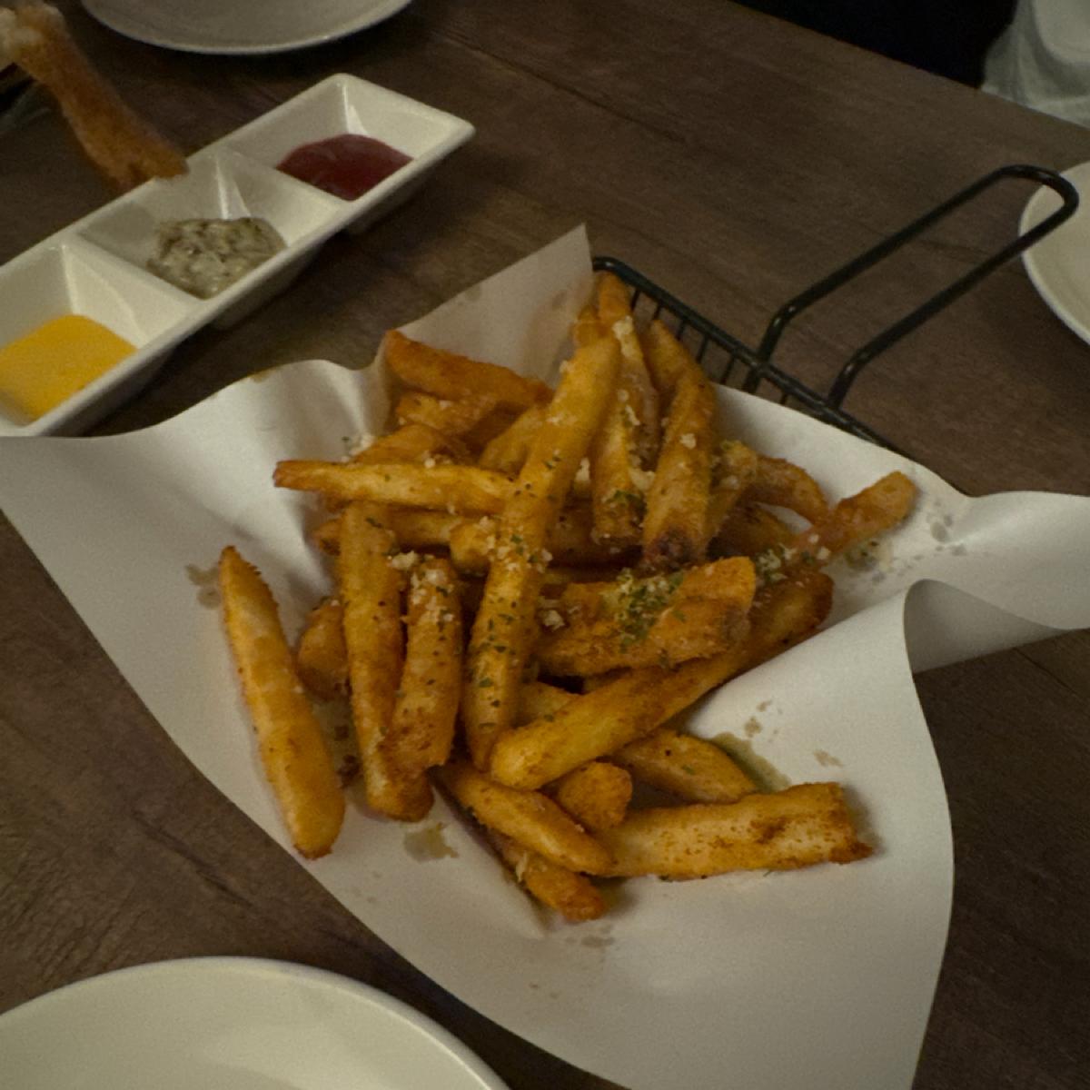 The fries are quite salty on their own, so there was no chance to dip in any sauces, and I didn’t taste the truffle 🤣