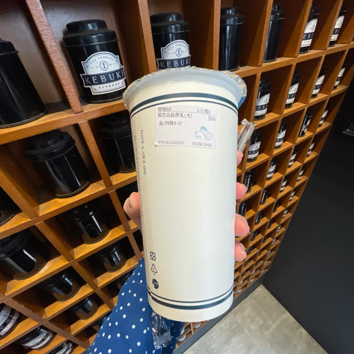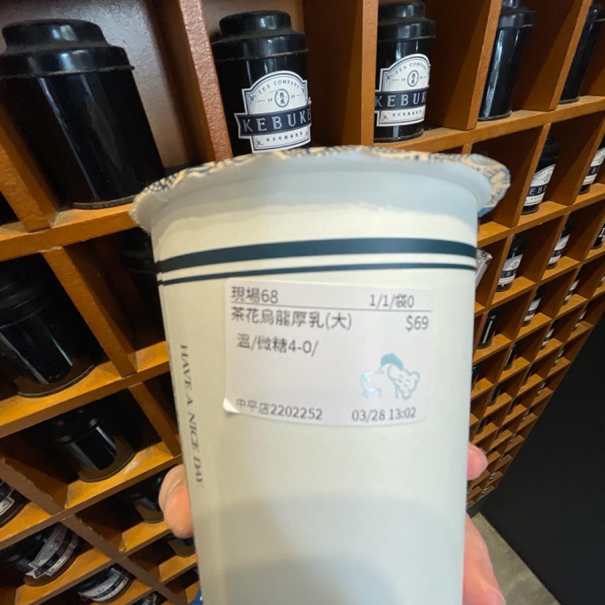 原本想點春芽冷露,但看到有新品可以嚐鮮,就決定試試看。原本跟生茶烏龍厚乳在猶豫,問了工作人員有什麼不同,原來生茶烏龍厚乳有加抹茶,害怕抹茶會澀所以選了另一款新品茶花烏龍厚乳。工作人員告知點溫的需要等五分鐘,我感覺五分鐘不會太久還特別告知覺得蠻不錯的。