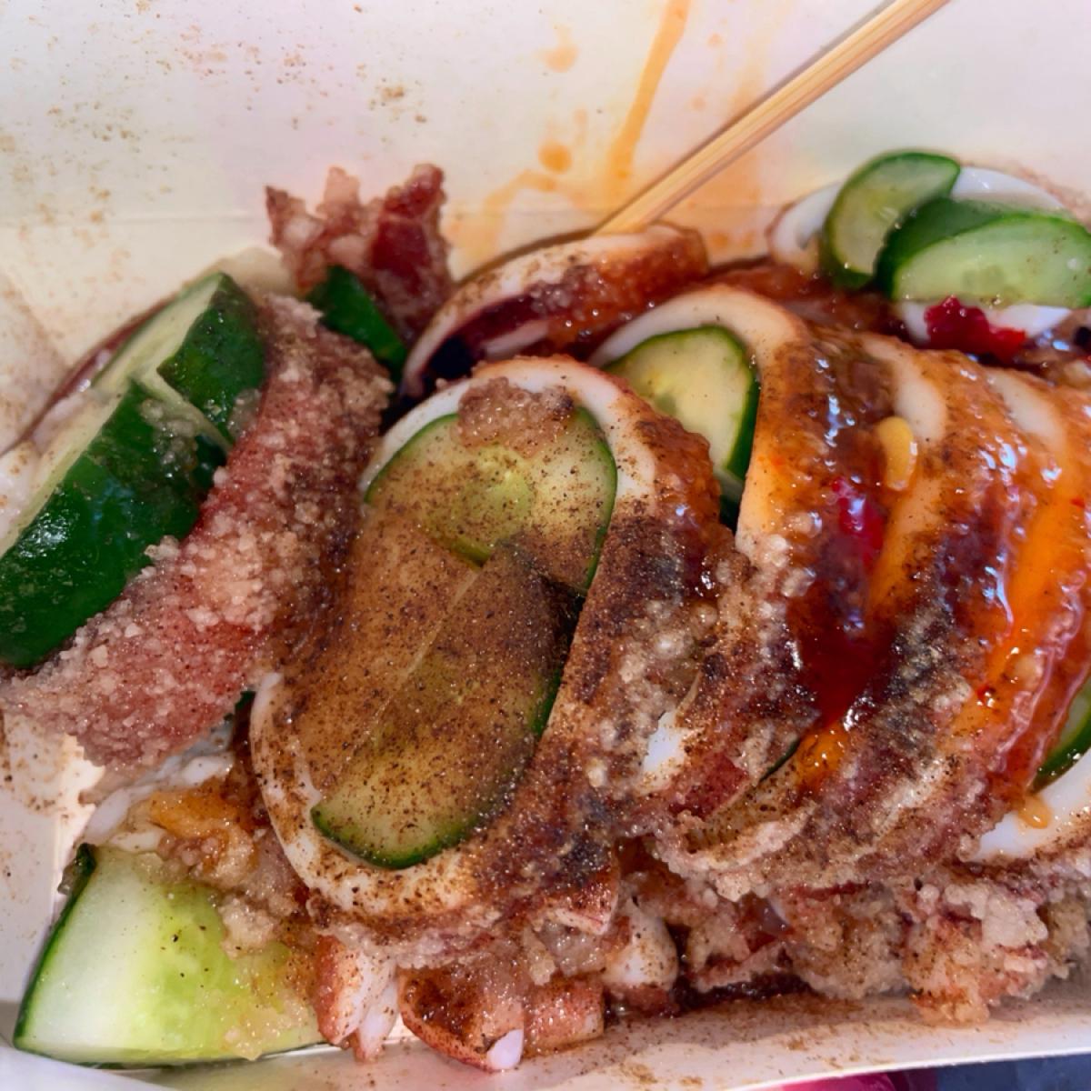 When you take a bite, the sour and sweet taste of the Thai sauce on the outermost layer first hits your taste buds. Then the outer layer is fried and crispy. The deeper squid is elastic and chewy, and paired with the innermost cucumber, it’s so much more. The texture is so layered that it’s hard to stop holding the bamboo sticks in your hands. You can finish it in less than 10 minutes.