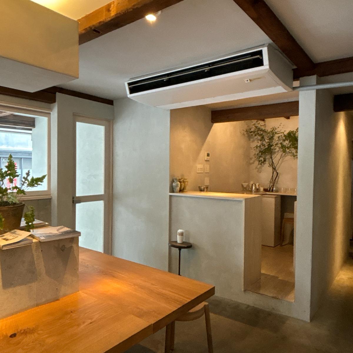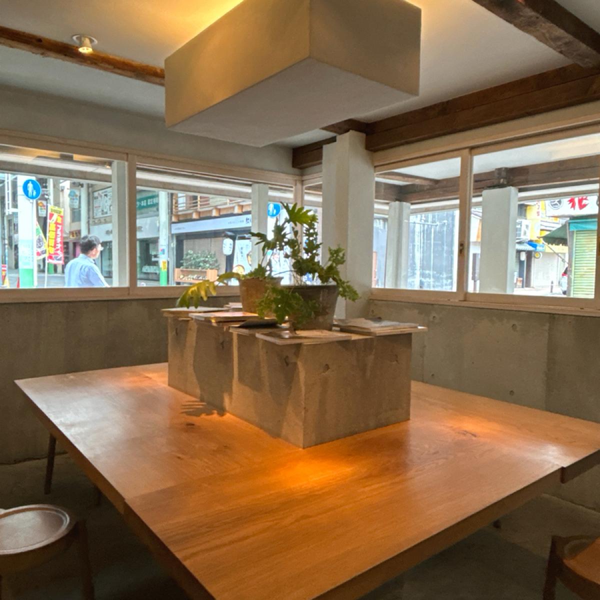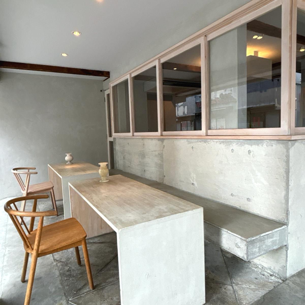 With a main decor of gray concrete and white painted wood, you can faintly see the PROBAT coffee roaster outside. This type of local shop always creates a space where people, no matter where they are, can enjoy excellent coffee from around the world.