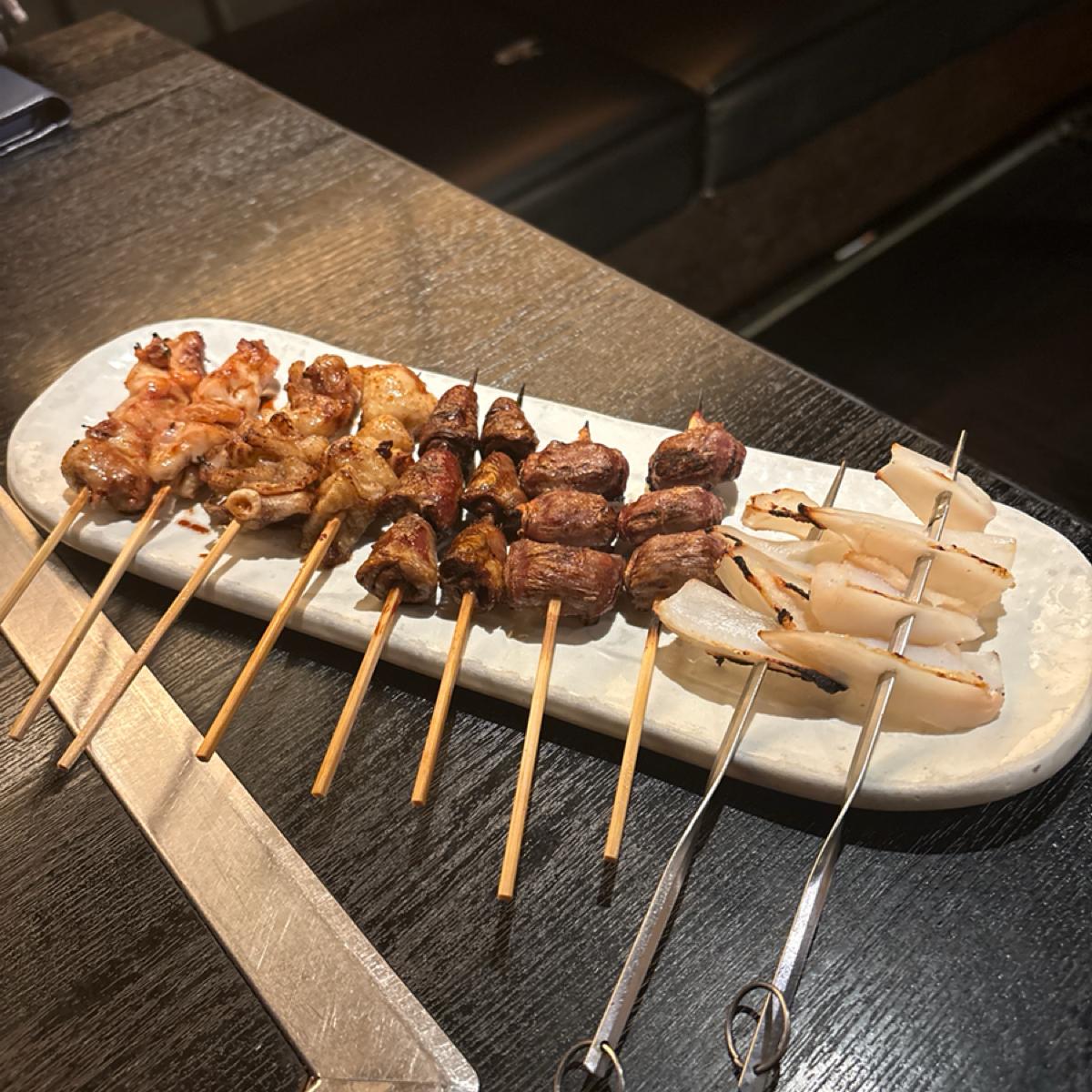 I went to a restaurant where they serve delicious tsukune (chicken meatballs) and meat sushi 🐔🍣.