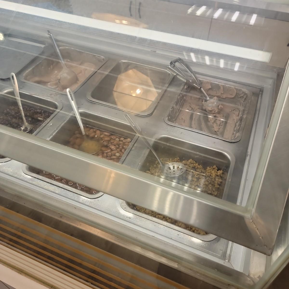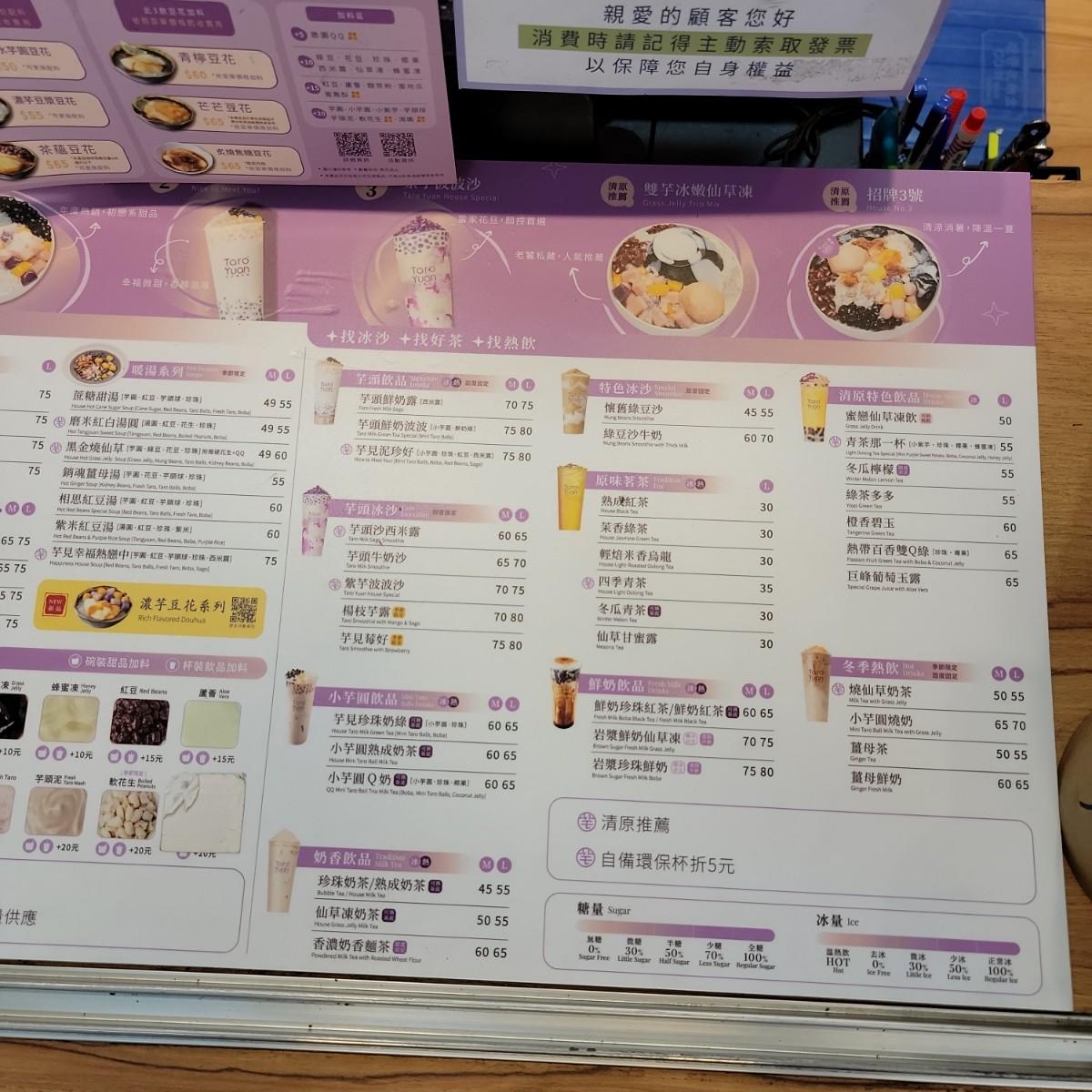 This is a shop that sells drinks and various ice products, specializing in many types of taro products. The shop looks clean and bright, with air conditioning open. There are only two tables inside, and you can see various ingredients in the refrigerator nearby. There are also two tables in the outdoor area, and you might be lucky to find a parking spot at the entrance.