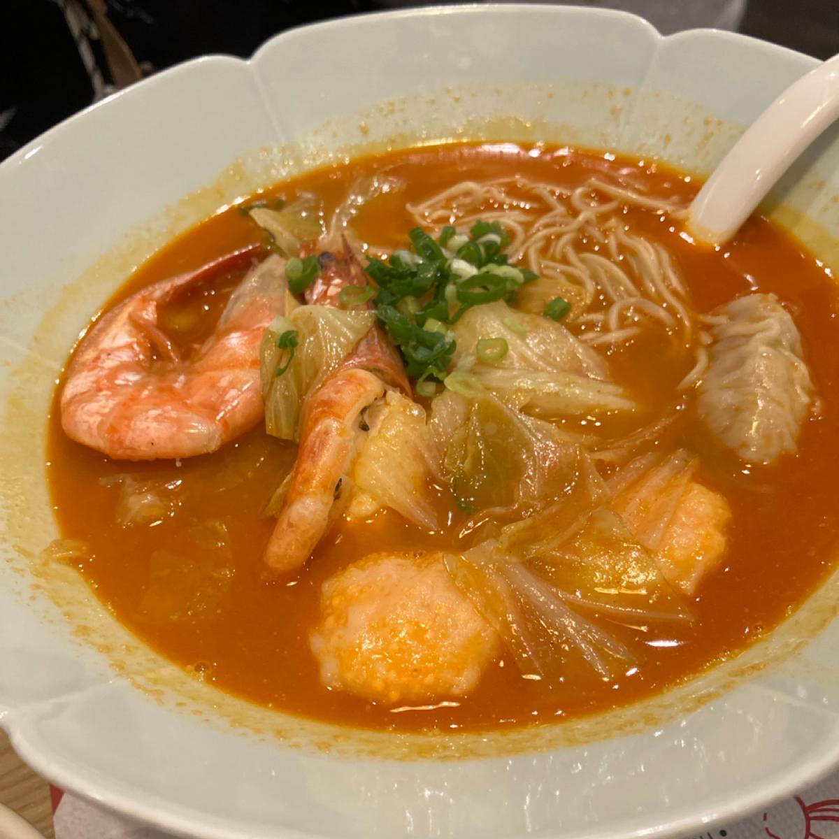 The shrimp roe soup is very thick and delicious, with a strong flavor. It also includes cabbage, which adds a nice touch. The shrimp oil enhances the overall aroma a lot! The fine noodles have a bit of chewiness, which I really like. Today, I had the Tong Huasun 2.0, and the shrimp balls with shrimp roe inside were very tasty. The chicken char siu was very tender with a grilled aroma that made it smooth to eat. The pork char siu was just okay, but the shrimp wontons were plump and large. The fried fish slices were also very delicious; I would order more.