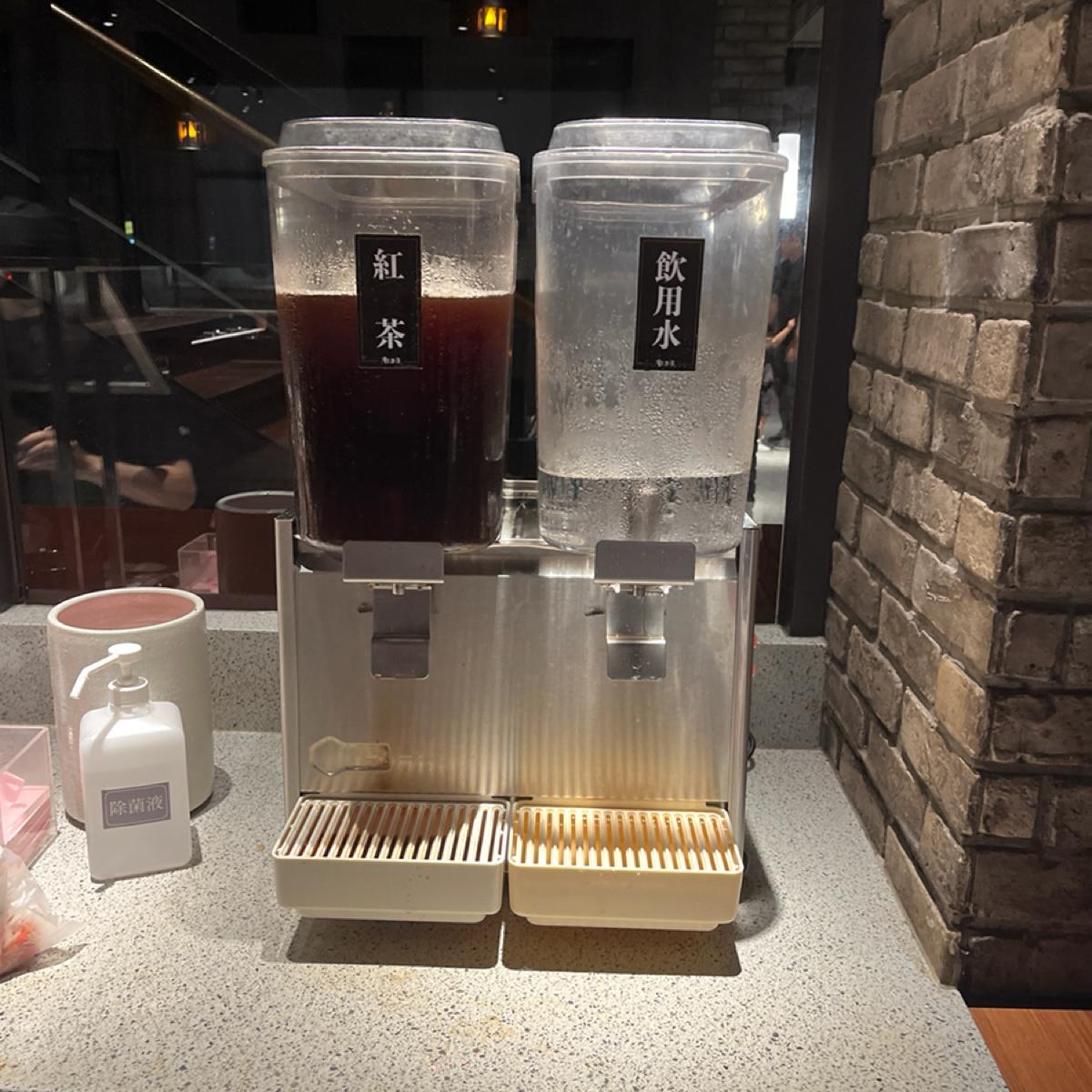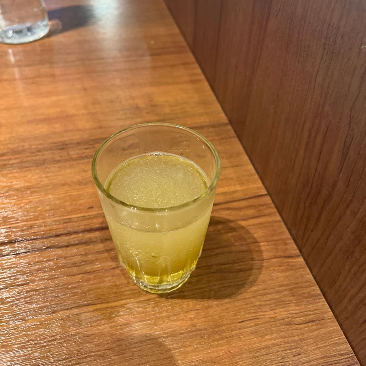 Everyone who orders a meal receives a pineapple vinegar (I think) 😂 Unfortunately, this vinegar cannot be refilled, but it's very tasty. Additionally, they offer unlimited iced water and iced black tea, and the iced black tea is quite good, although on the sweeter side.