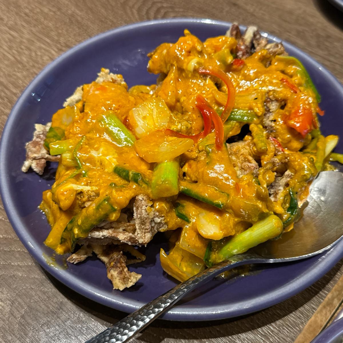 The soft-shell crab is completely not crispy, with a moist and soft texture, as if it had been served after sitting out for too long. If the soft-shell crab loses its crispiness, the whole dish loses its soul. The yellow curry ruined the soft-shell crab, making the overall dish feel sticky and lacking in depth.