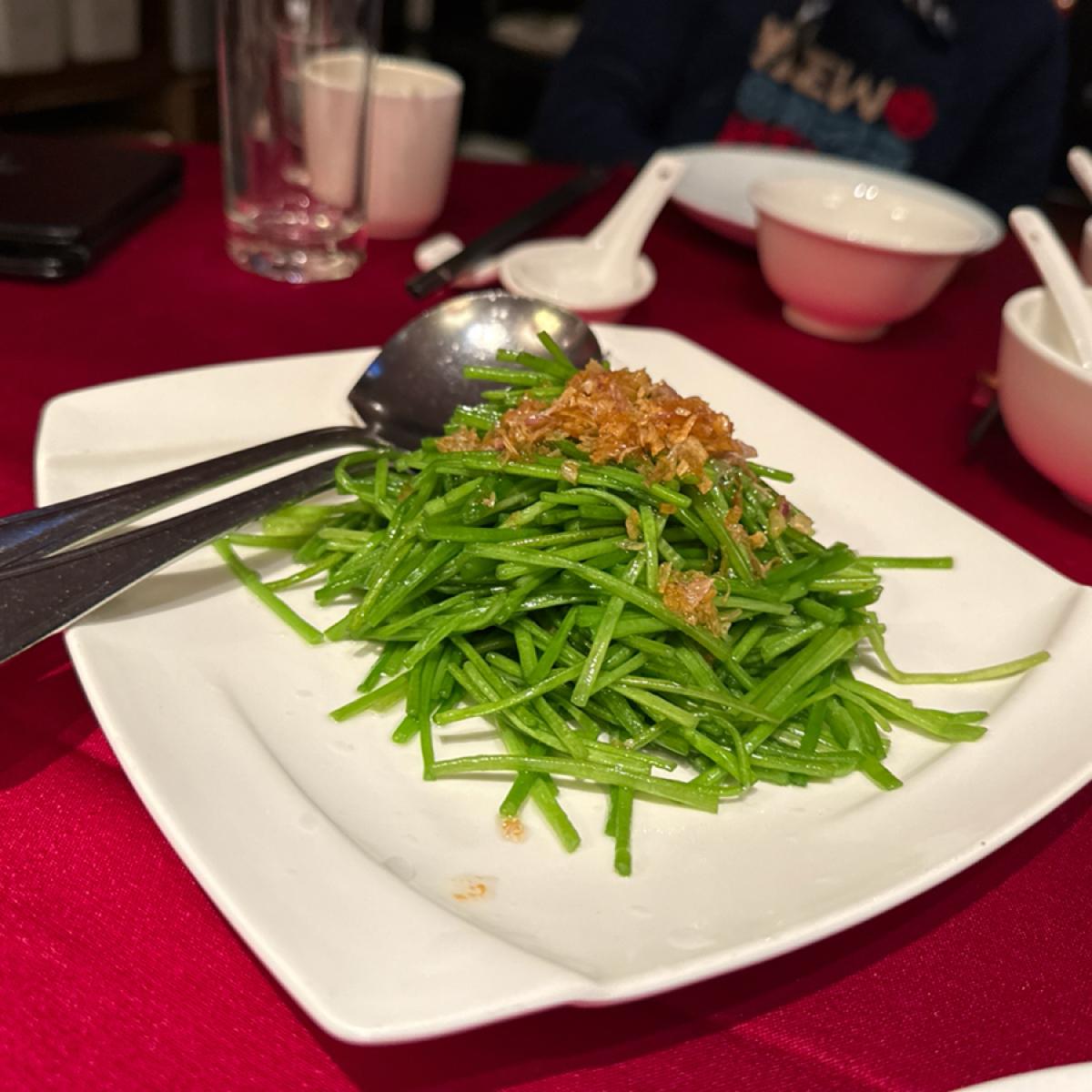 The stir-fried vegetables are different from those at other stir-fry places. They are served with a bowl of goose oil that can be added to the vegetables. Stirring it together elevates the flavor of the stir-fried water lily without making it too soft and losing its texture.