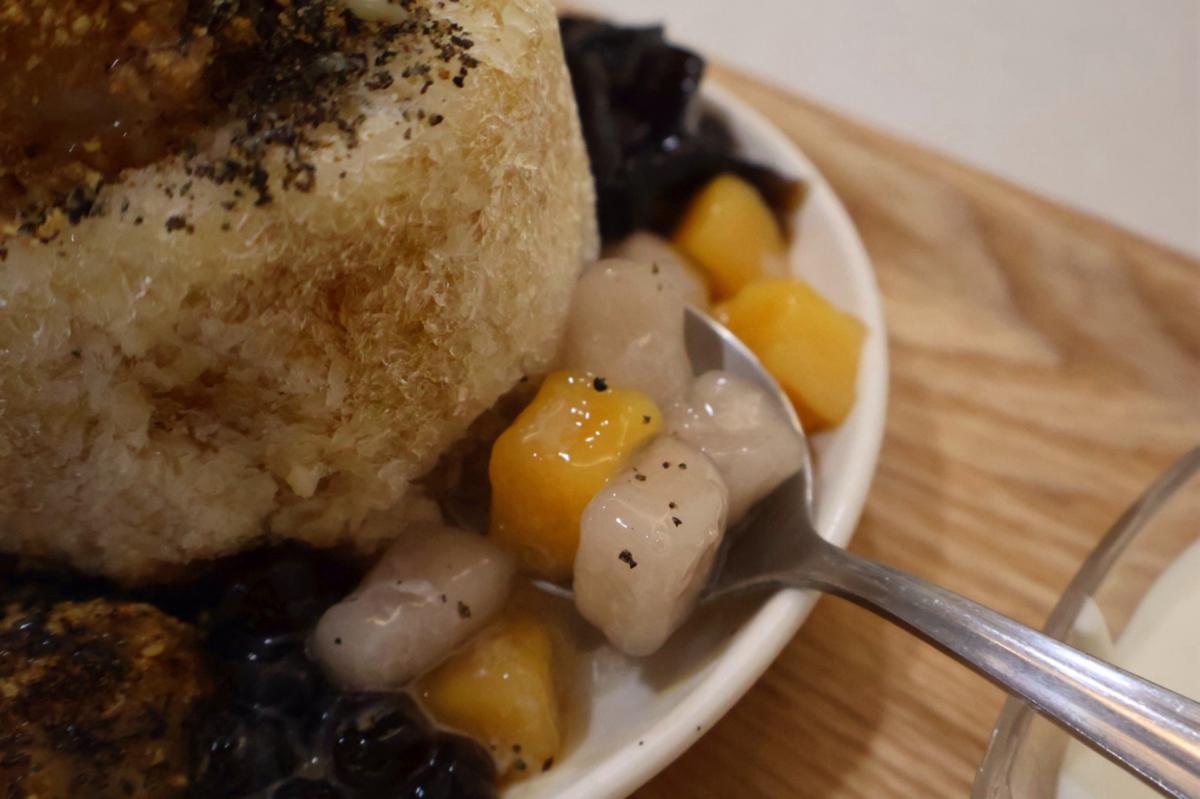 · Freshly shaved ice topped with various ingredients (sweet potato balls/taro balls/grass jelly/sweet red beans/sweet taro), plus hot grilled mochi of your choice. Eating this is truly delightful! 🔥 I also pretended to be wealthy and added the milk foam 🤣 The mochi dipped in the milk foam is super delicious!!! (The shop also sells dipping sauces for the mochi separately). Overall, I think the value for money is quite high.