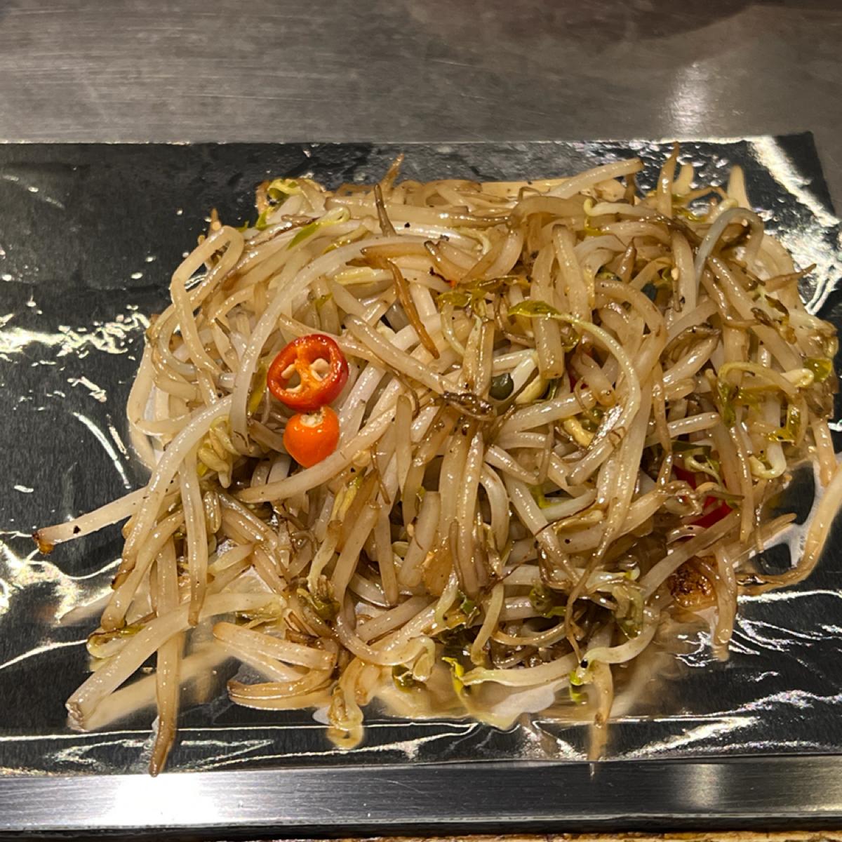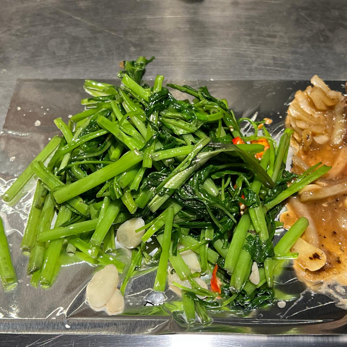 This time I ordered sirloin beef, and the sauce means black pepper sauce. The entire meal includes the main dish, bean sprouts and water spinach. Please see the picture below.