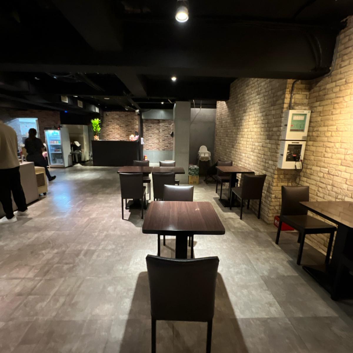 It is located on the first floor of the basement. The stairwell smells a bit musty, but there is no smell after entering the restaurant. The indoor space is large. In addition to two cooking tables and a rock area where you can sit, there are also some tables.