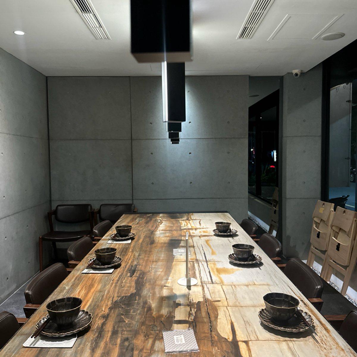 The seating area has square tables for 2-4 people, large round tables suitable for gatherings, and long private tables for privacy. You can book in advance if necessary.
