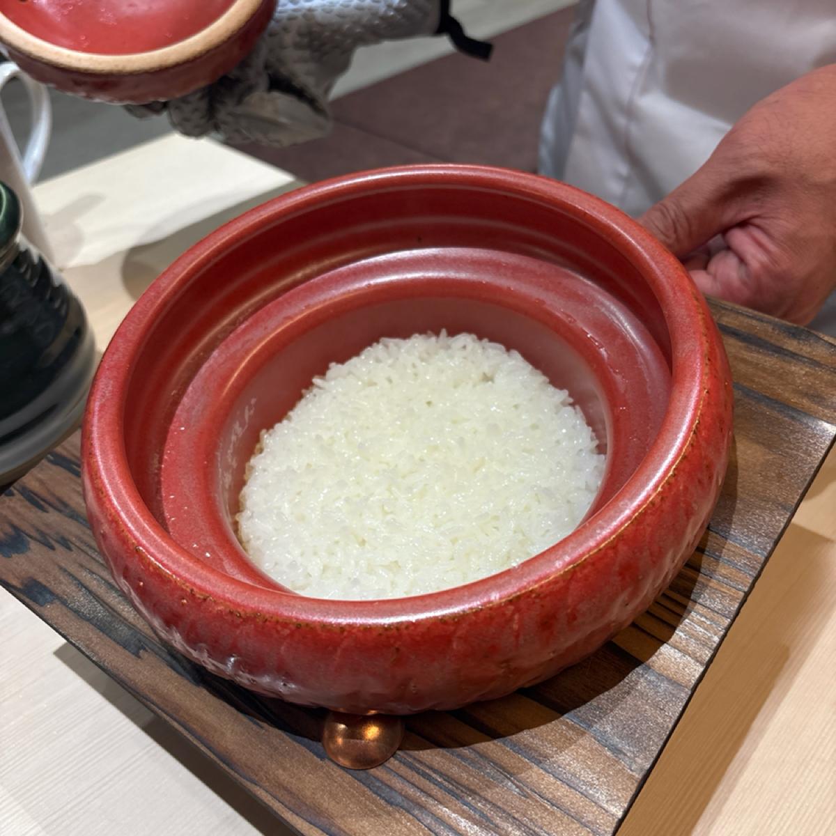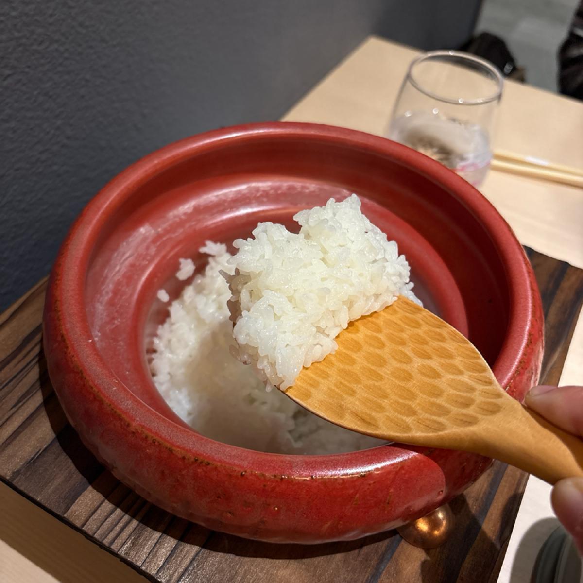 For the rice, they used a selection of "delicious rice" carefully chosen by Yatsushiro Hihinbeyeee 🌾. It was served in a clay pot and was fluffy, delicious, and had a nice crispy bottom 🥰.