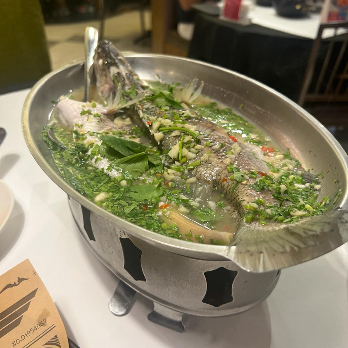 Lemon steamed fish 🐟520$ (sour, spicy and coriander, tastes good and the meat is average)