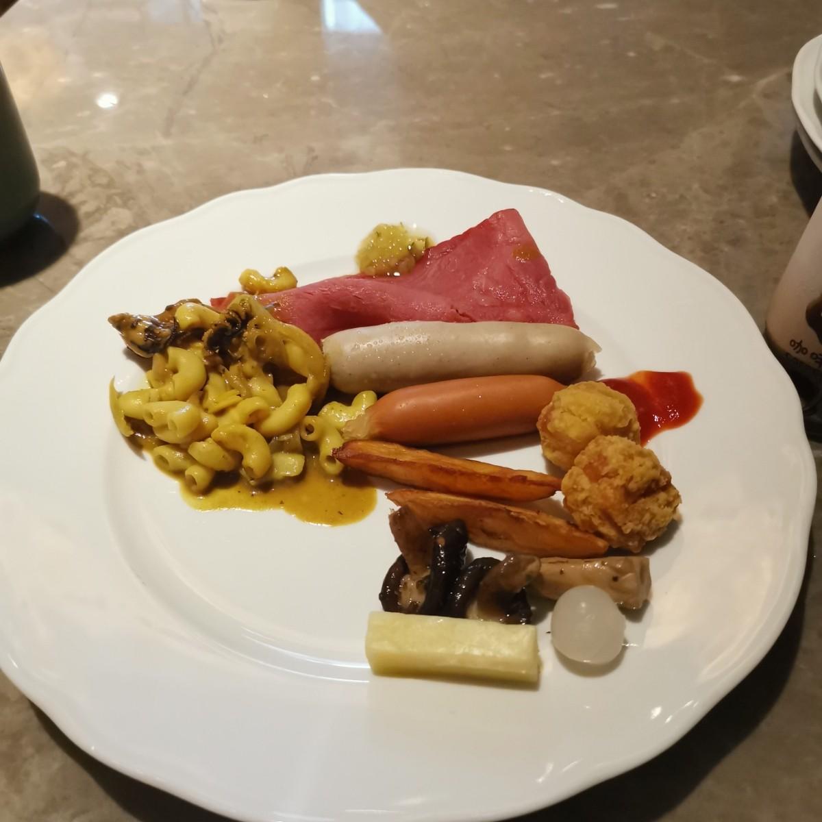 I stayed at the Luk Fook Courtyard for one night and stopped by to check out their breakfast. The price listed on the official website is 780 + 10% per person. Those who want to enjoy a micro-high-end hotel strongly recommend booking through Shopee. A four-person room is only 4800 inclusive per night. Breakfast, the high-altitude view on the 25th floor is really good!