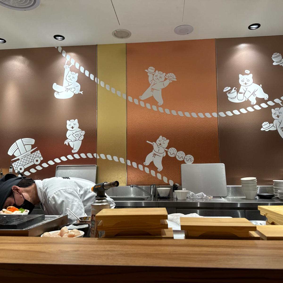 so the chefs at the counter are basically focused on their own work.