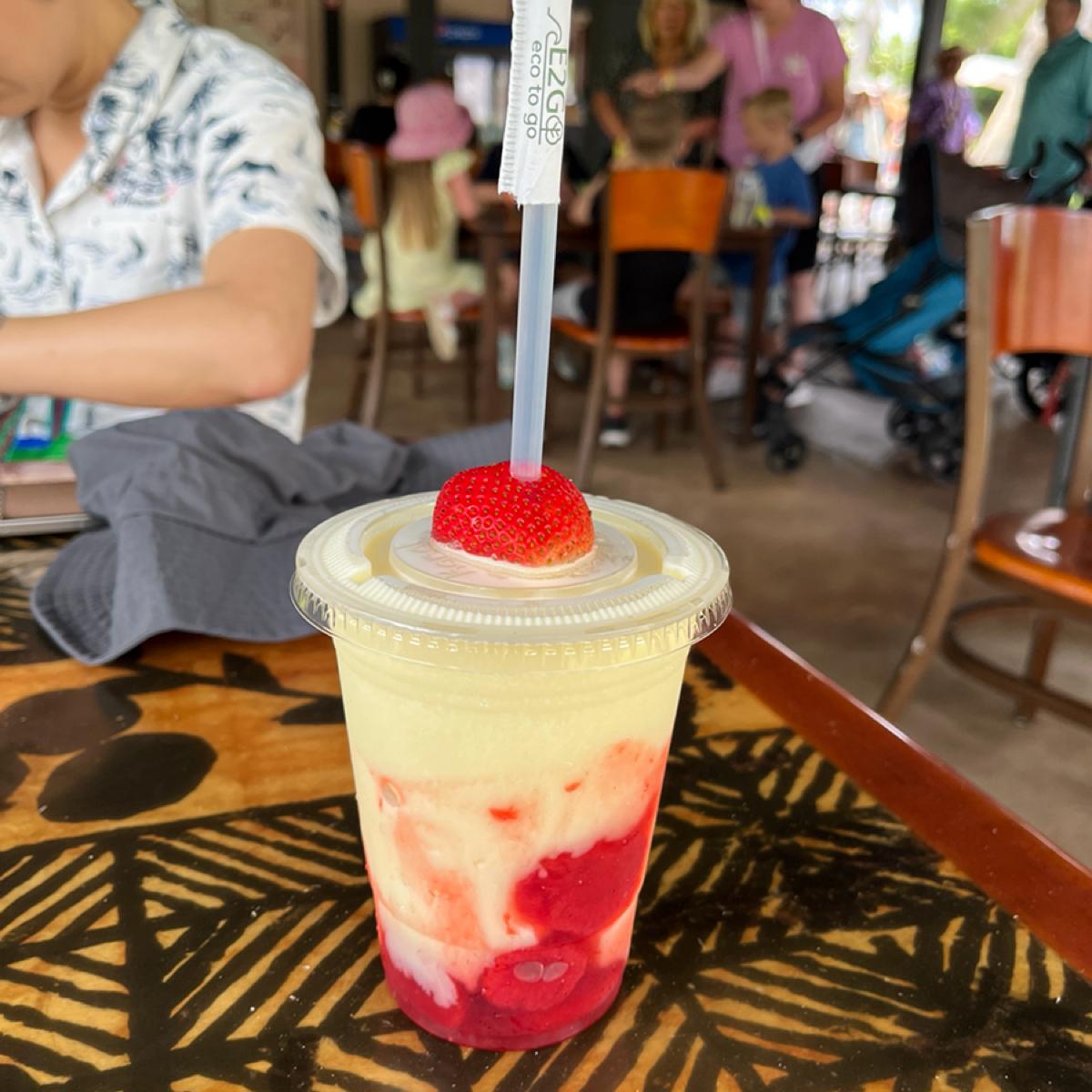 我點了一個漢堡跟草莓奶油奶昔。漢堡的部分表現的很平均,肉跟起司的搭配還算不錯,但麵包的部分偏乾。奶昔的話真的還滿驚豔的,至少在夏威夷吃的菜色中,都是甜點的表現讓我比較驚訝。因為本身不太吃甜點,但是他們的甜點飲品真的做得不錯,不是只有死甜。推薦飲品可點!