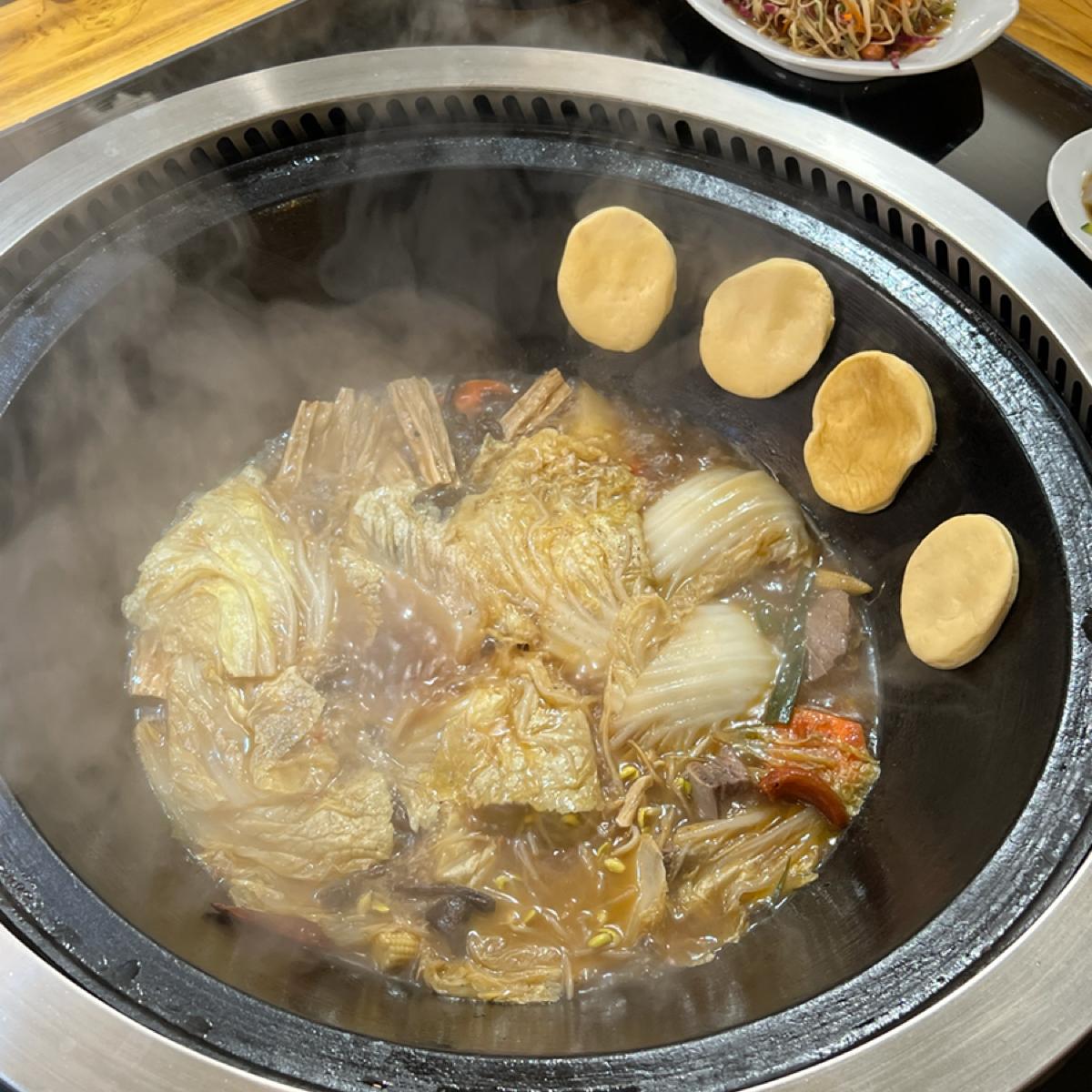 This time, two of us went to taste the dishes. The iron pot cooking requires about 30 minutes from ordering to enjoying ⌛️. The pot dishes are very flavorful and do not need dipping sauces to be delicious. The amount of pork ribs 🍖 is quite generous, making for a satisfying meal. I highly recommend adding hazelnut mushrooms, which taste like dried mushrooms and pair well. The napa cabbage 🥬 absorbs the essence of the broth and complements its own sweetness perfectly 👍. The corn cake, a unique Northeast dish, cooks right on the iron pot and is even better when dipped in the broth 😋, completely replacing the need for rice!