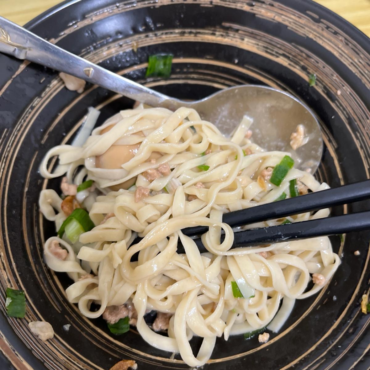 This time, we ordered the scallion oil dry noodles, blanched greens, QQ meat, and today's soup of the day—corn soup. The scallion oil dry noodles use salted water noodles, and as soon as it arrives at the table, you can immediately smell the distinct fragrance of scallions. The noodles have a chewy texture, and once mixed, every bite carries the sweetness of scallions and the richness of the sauce. The seasoning isn’t overpowering but has clear layers, making it the kind of dish that leaves you feeling satisfied without being too heavy.