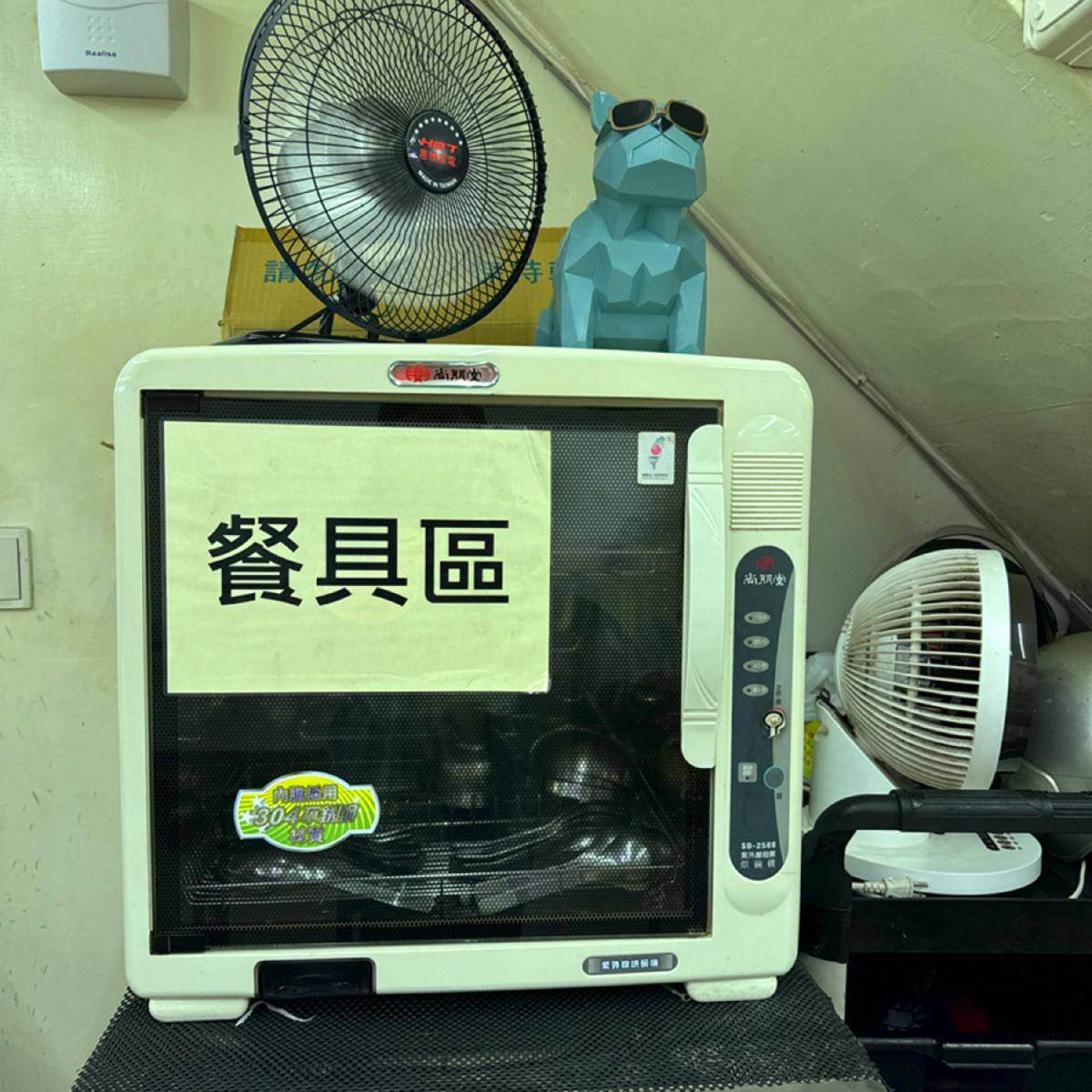 There are about 20 seats in the store. The news station is playing on the TV on the wall. The tableware is stored and sterilized in a dish dryer. It feels cleaner than leaving it outside~