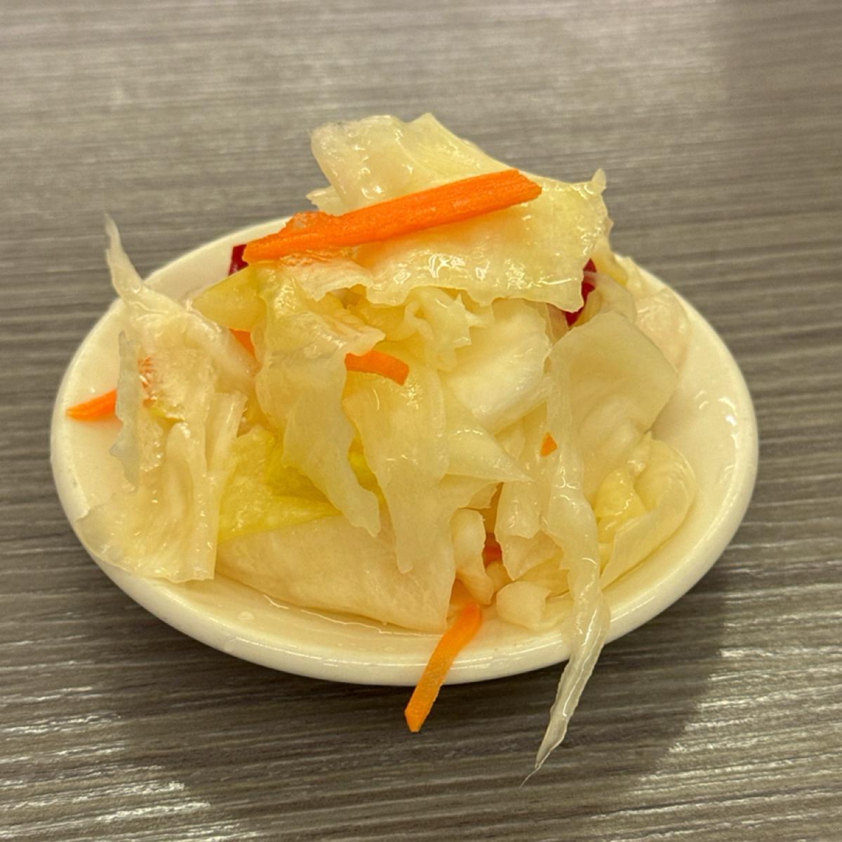 The pickled kimchi is moderately sweet and sour, and you can taste the crispiness of the cabbage. I really like this kimchi and will order it every time I come here!!!