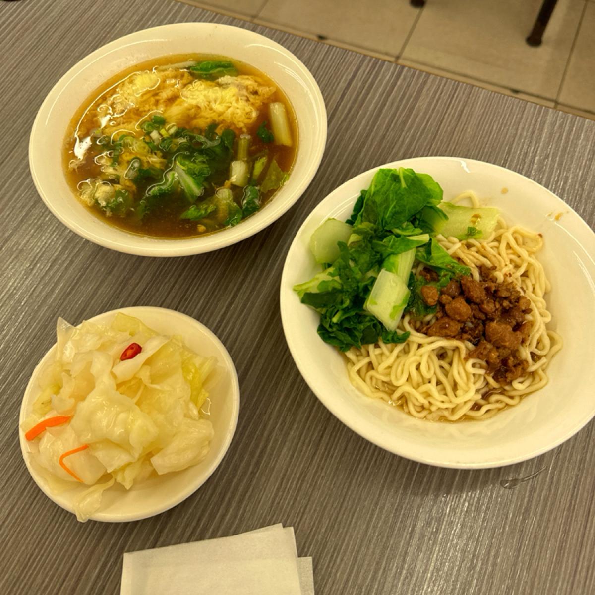 The content of the set meal is: "Dry noodles + beef and egg drop soup (meatless) + side dishes"
