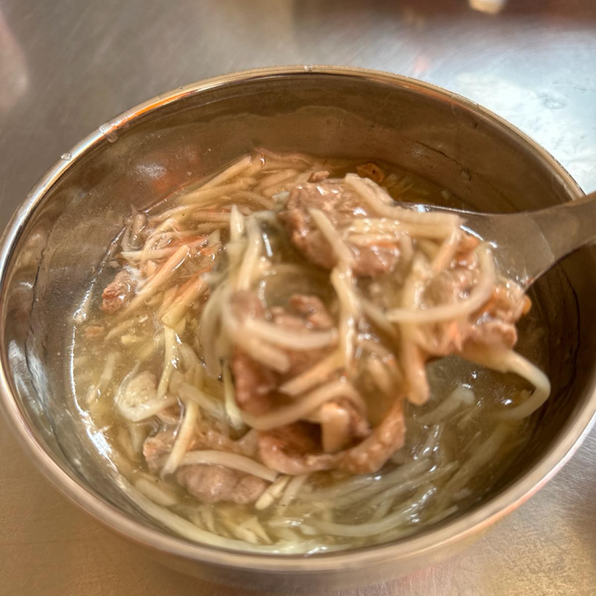The duck meat soup has a lot of sweet bamboo shoots; after being stir-fried over high heat, the duck has a wok aroma. The texture is slightly thickened, and the broth is on the sweeter side, with a small portion size. It’s great as an afternoon snack; if you like spicy food, you must give it a try. The fragrant chili is rich, though the duck meat feels a bit dry.