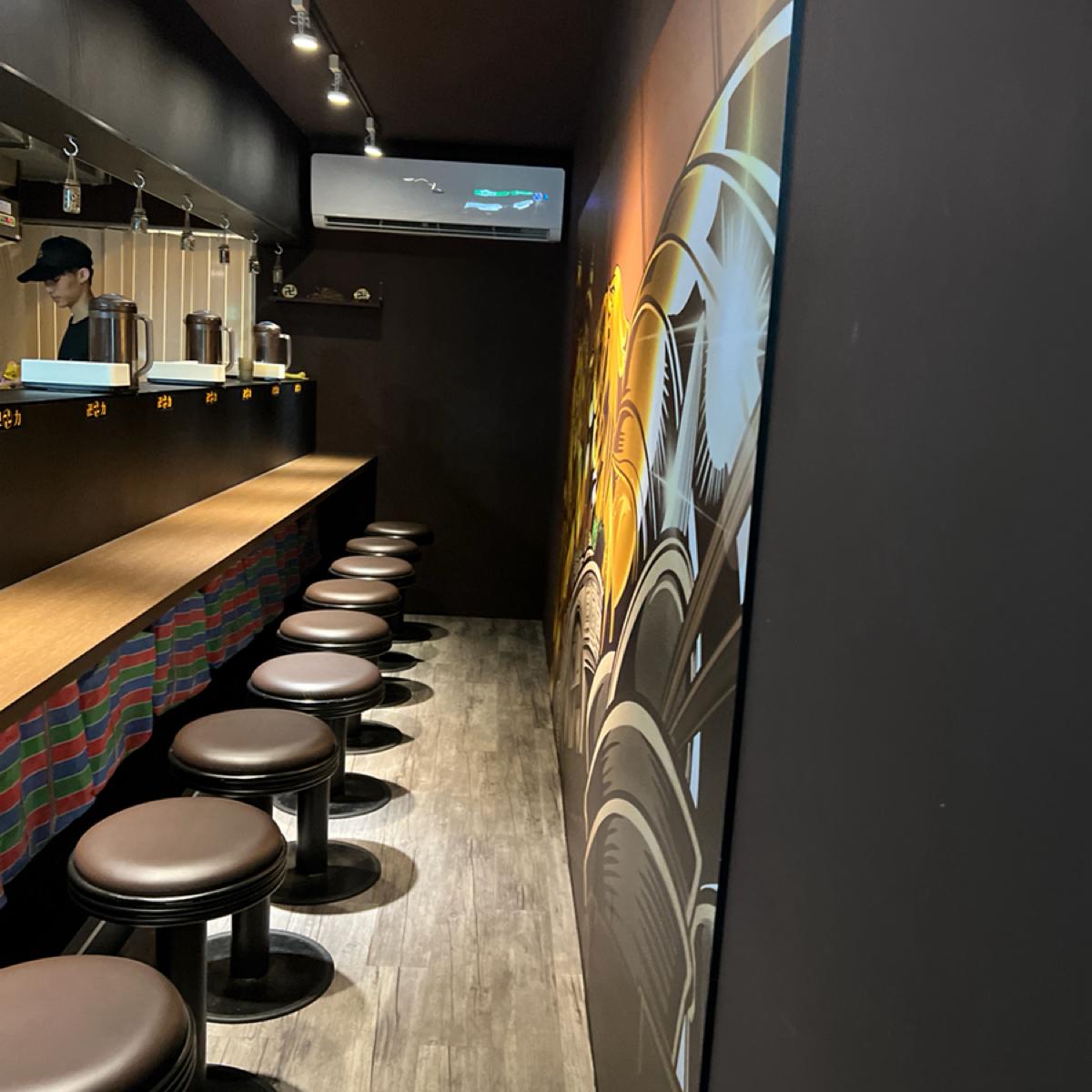 The space inside the store is not large, with only about 10 seats at the bar. The rules outside the store say you are not allowed to take pictures of the kitchen, and do not swipe your phone on the seat after eating.