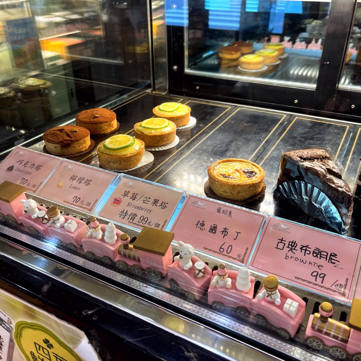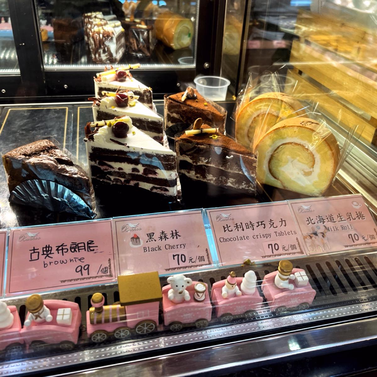The shop displays a variety of cakes, from individual portions to large sizes, with a wide range of options to satisfy different dessert lovers' needs.