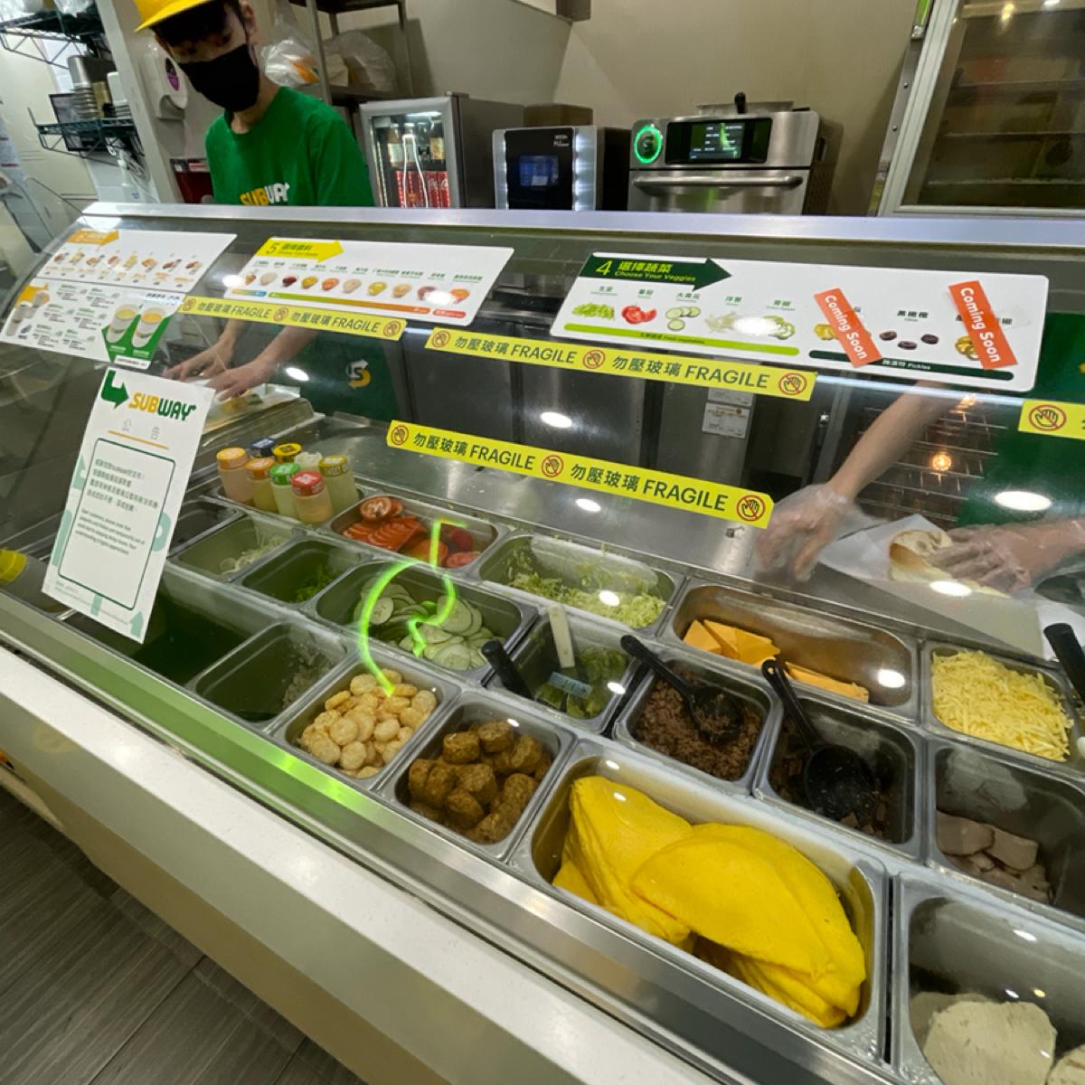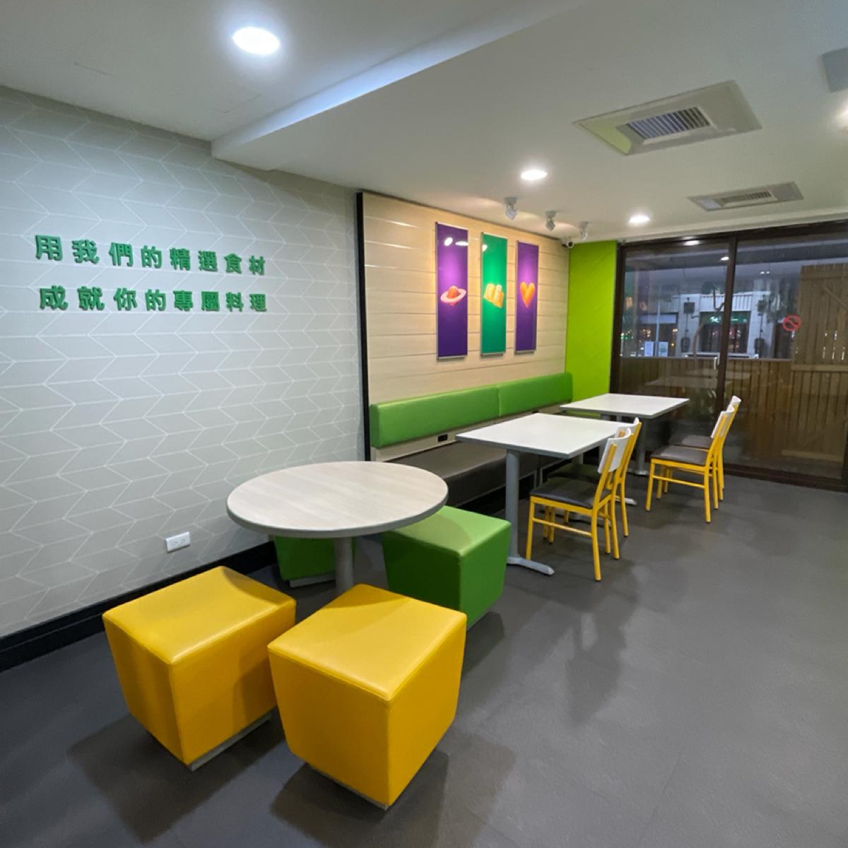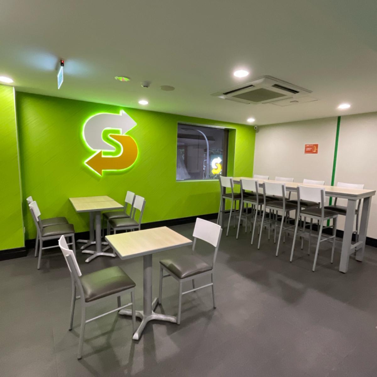 🔹 The decor is very SUBWAY, with large patches of green and yellow.