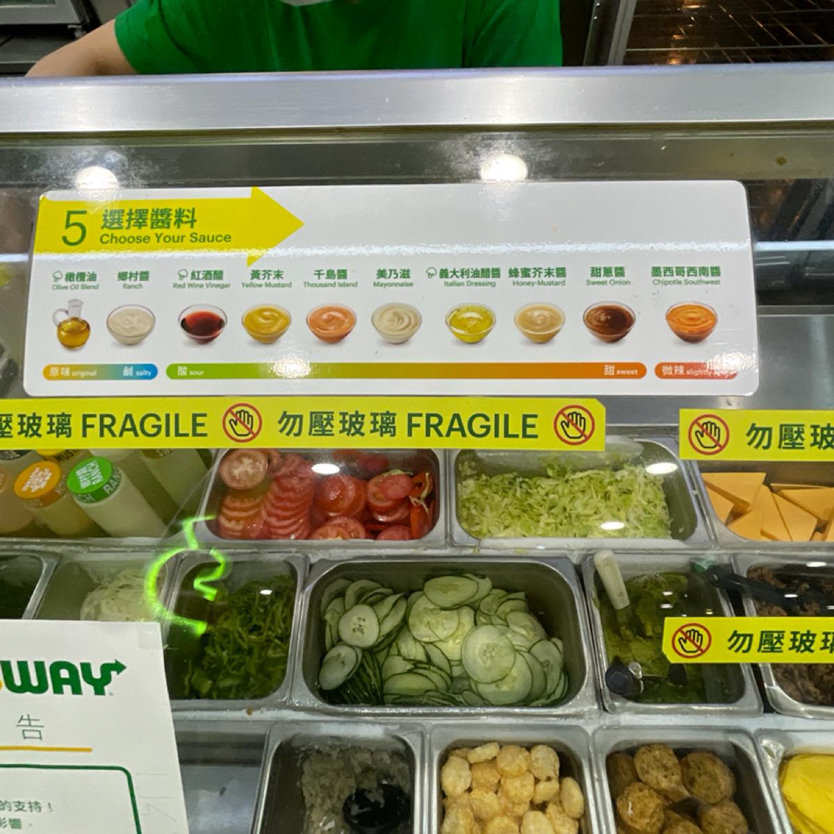 For the sauce, I chose "olive oil" + "Southwest sauce," but the Southwest sauce has the highest calories, so it nicely balances out the emptiness after eating a submarine sandwich~~