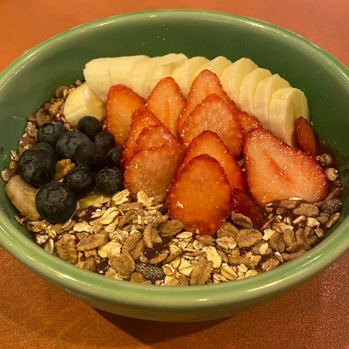 A dish loaded with bananas. The acai itself is low in sweetness and healthy 🥣.
