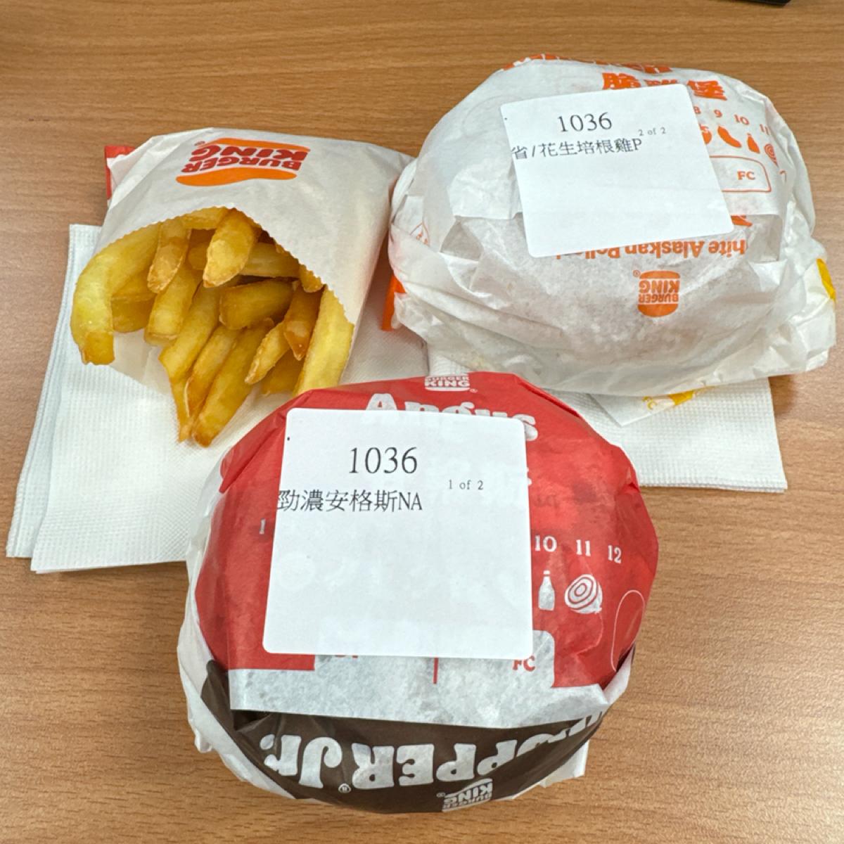 This meal: Strong Angus, Peanut Bacon Chicken, French Fries, Coke