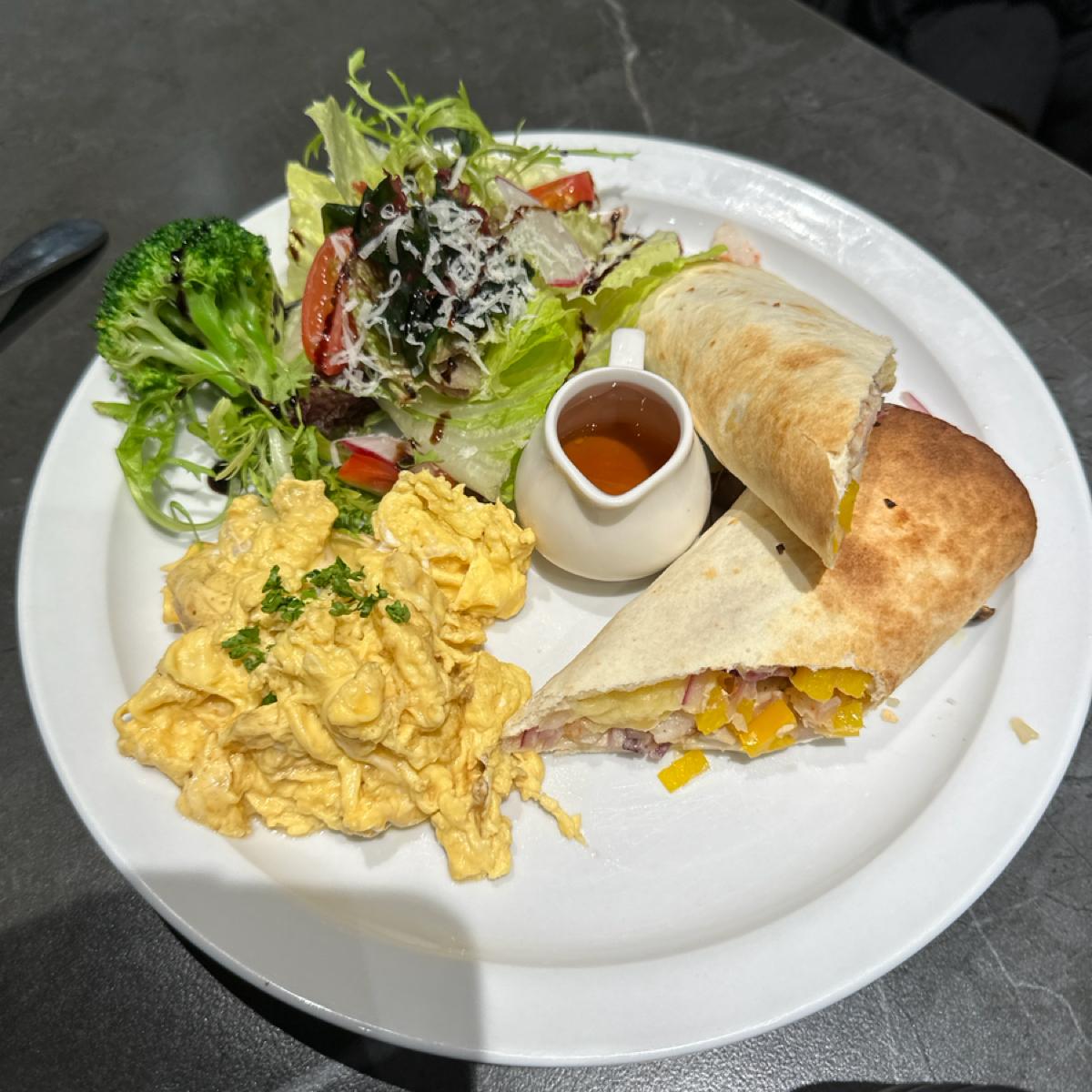 The shrimp burrito is health-oriented and has a lot of lettuce
