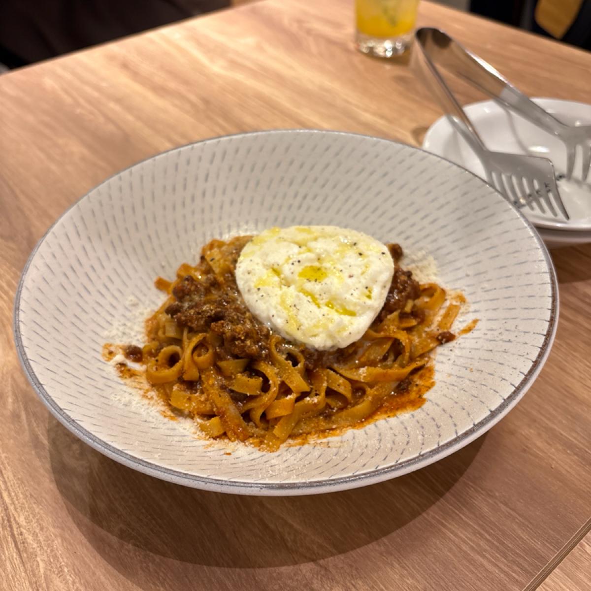 The pairing of burrata cheese with Bolognese sauce was fantastic and really tasty 🧀.