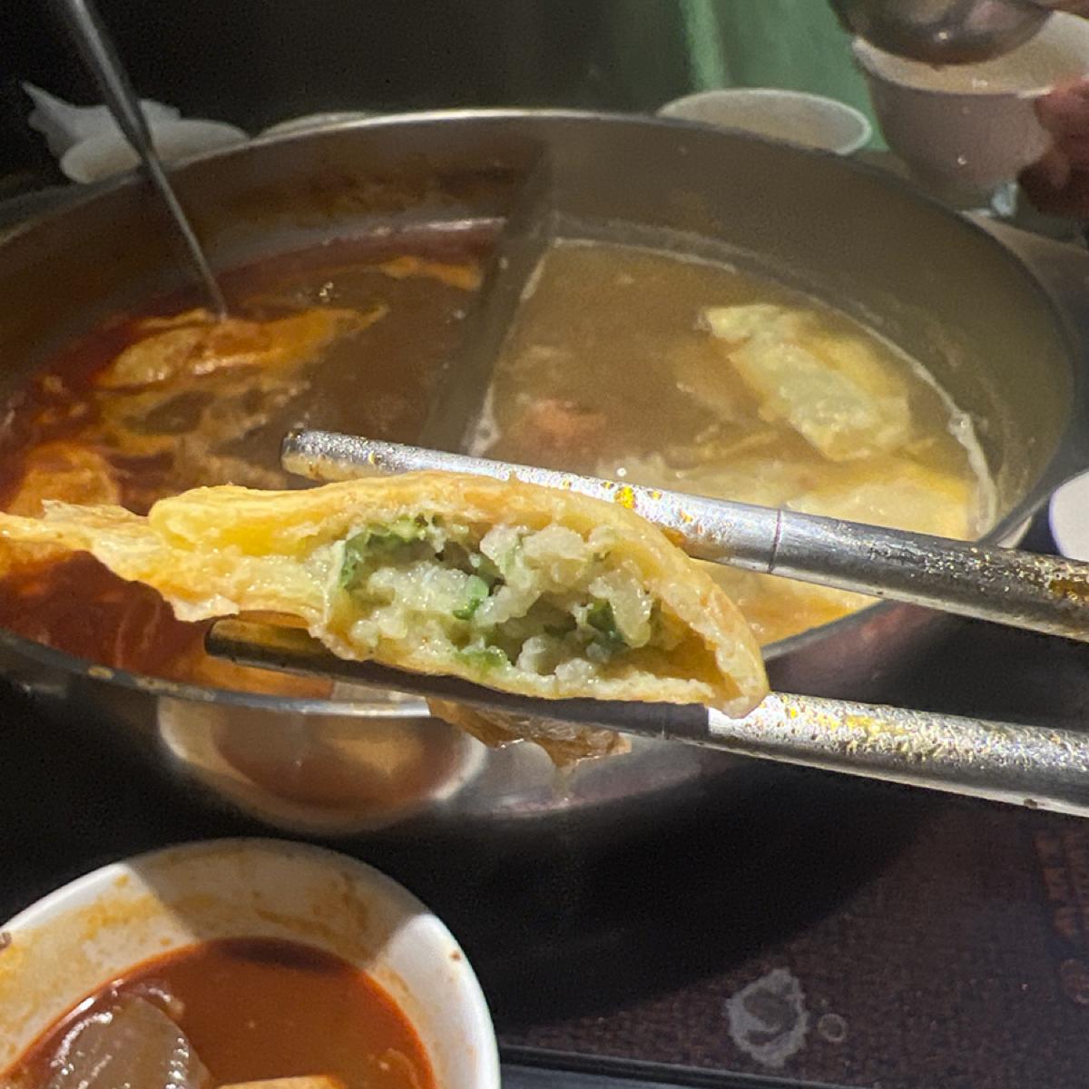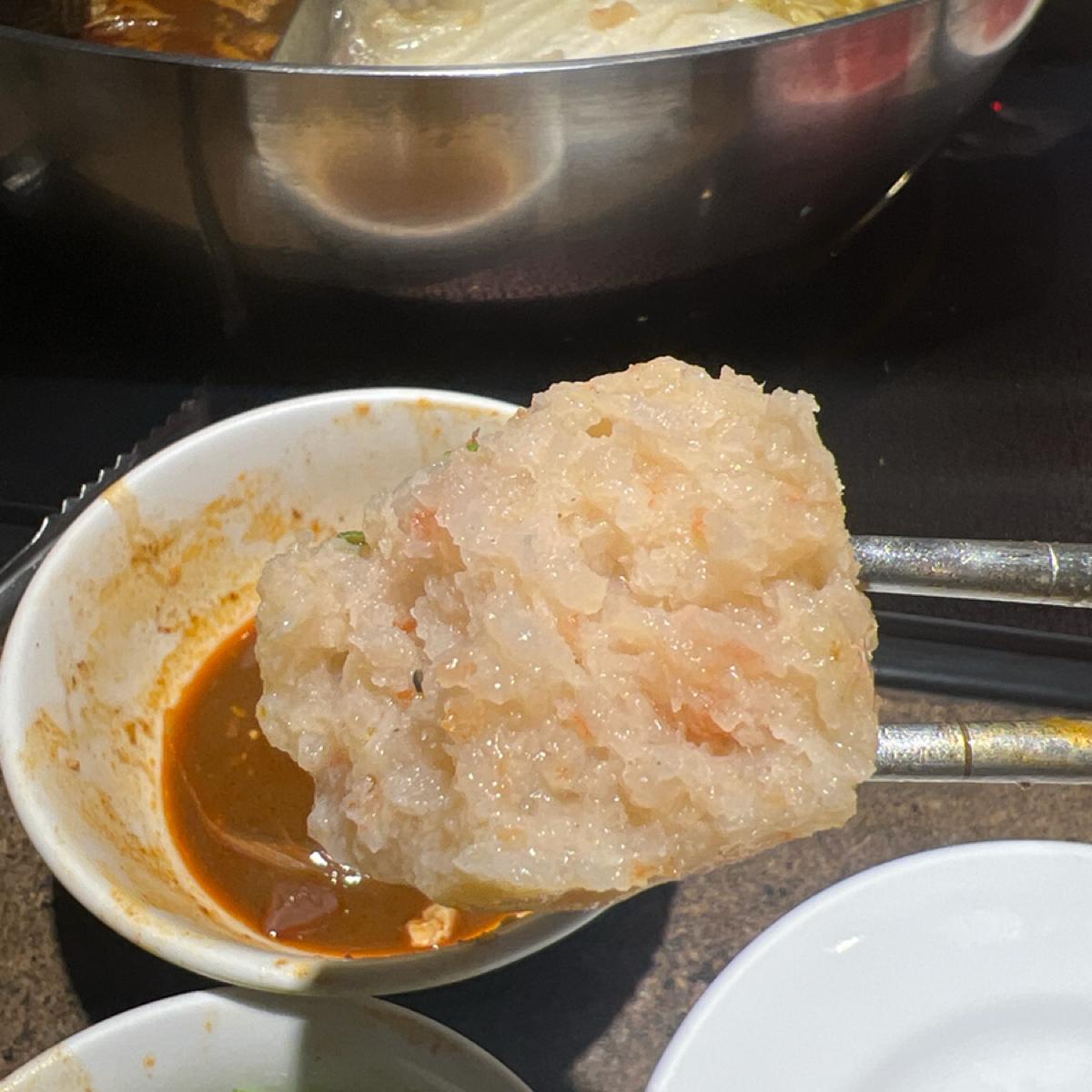 The spicy pot has a rich broth that's not overwhelmingly salty and has an herbal taste. Towards the end, they help add more white broth, and the duck blood tofu is quite tender. The meats are average. I prefer the snow vegetable dumplings. The fresh shrimp balls are full of real shrimp meat 👍. The beef offal is different from others; it’s not pre-braised as the owner mentioned, they only use blanched. The beef tendon is soft and tasty. I find the crispy pork ribs average, quite tough to chew. Overall, it's pretty good, and I would return. Next time, I want to try the seafood.