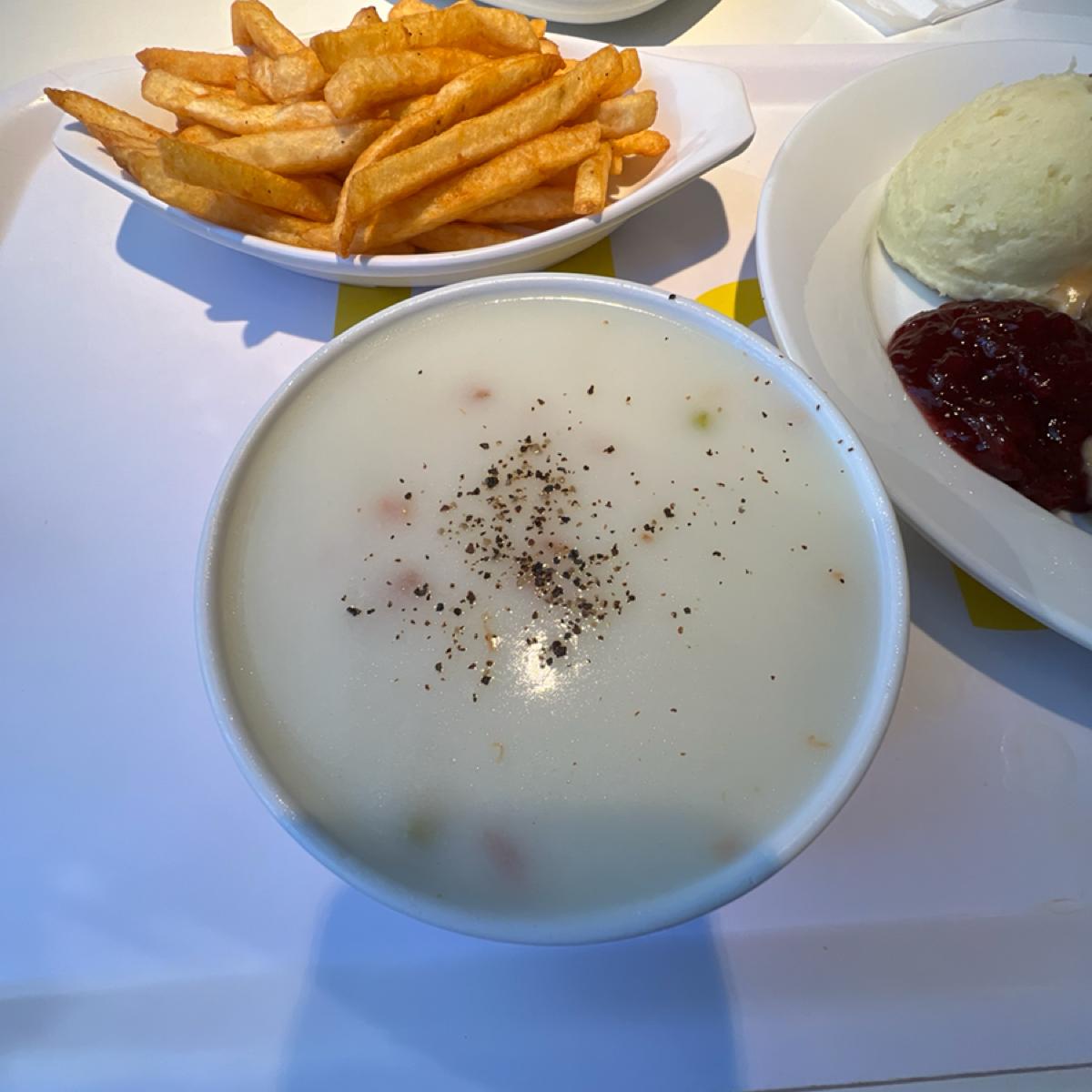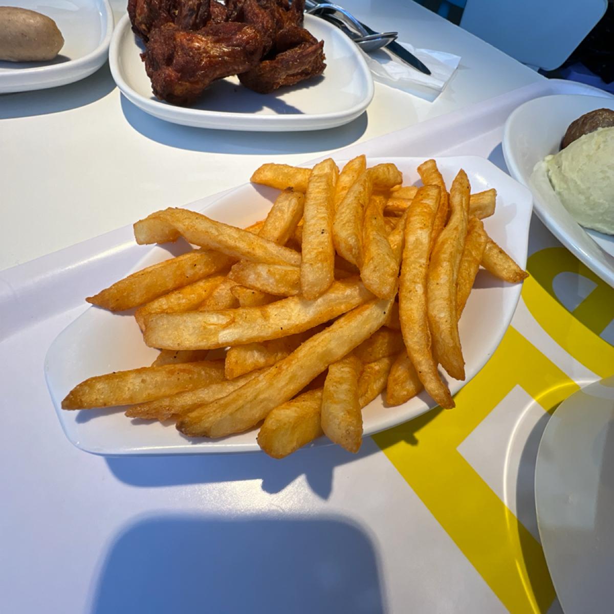 As for the salmon chowder, which I used to love, I was a bit disappointed this time. The soup did not taste as rich as I remembered, and it seemed to have fewer pieces of salmon; I’m not sure if they recently changed the recipe or if it’s just my perception. On the other hand, the fries remained consistently good, crispy on the outside and soft on the inside, not too greasy, and pairing them with the ketchup provided in the restaurant was just right. Also, the boiled sausage was quite tasty; I recommend trying it with the honey mustard sauce.