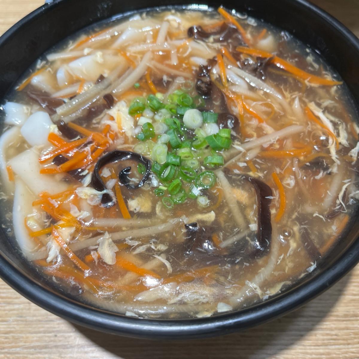 Knife-Cut Sour and Spicy Noodles, priced at NT$100, have a soup that is sufficiently sour and spicy, and the noodles are slightly thick with a nice chewiness, not mushy at all, making them very tasty when eaten together.