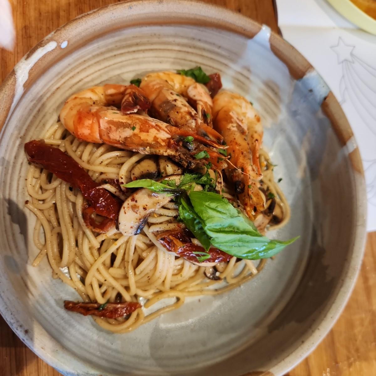 The Oglio Olio was good as well and the size of the prawns were huge. It was well seasoned and the pasta al-dante. Chili flakes were put to the side to accommodate the children.