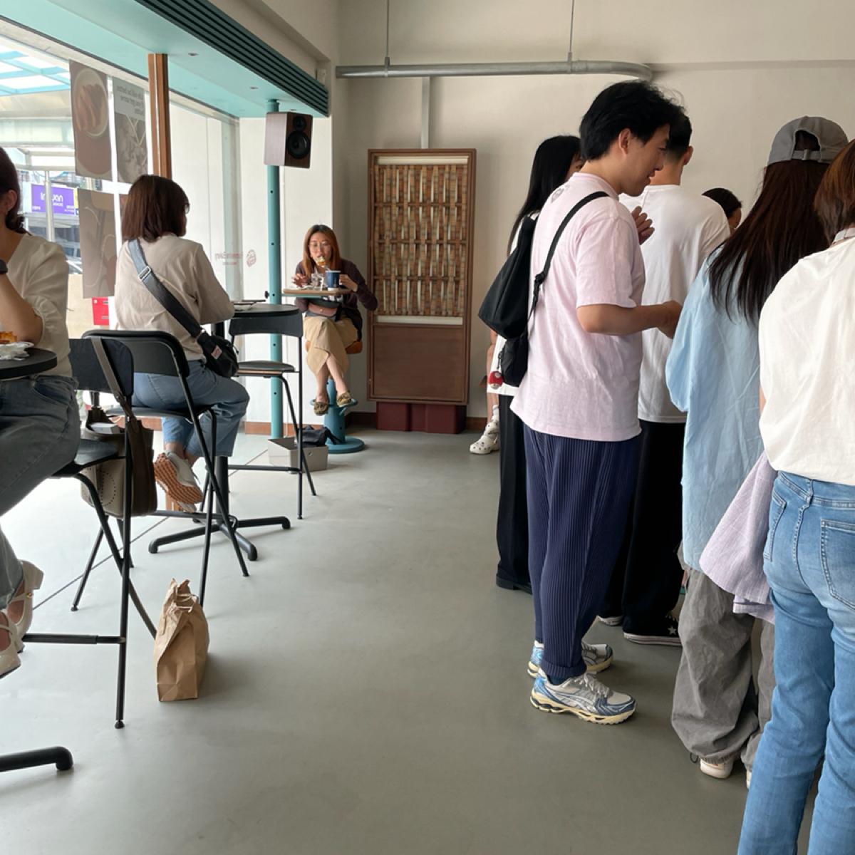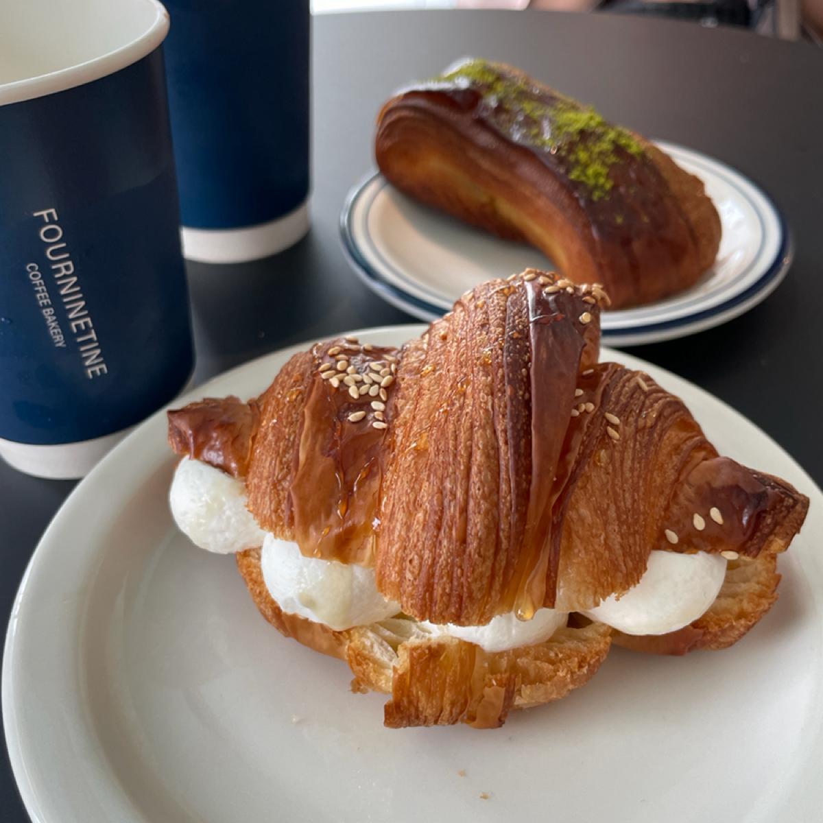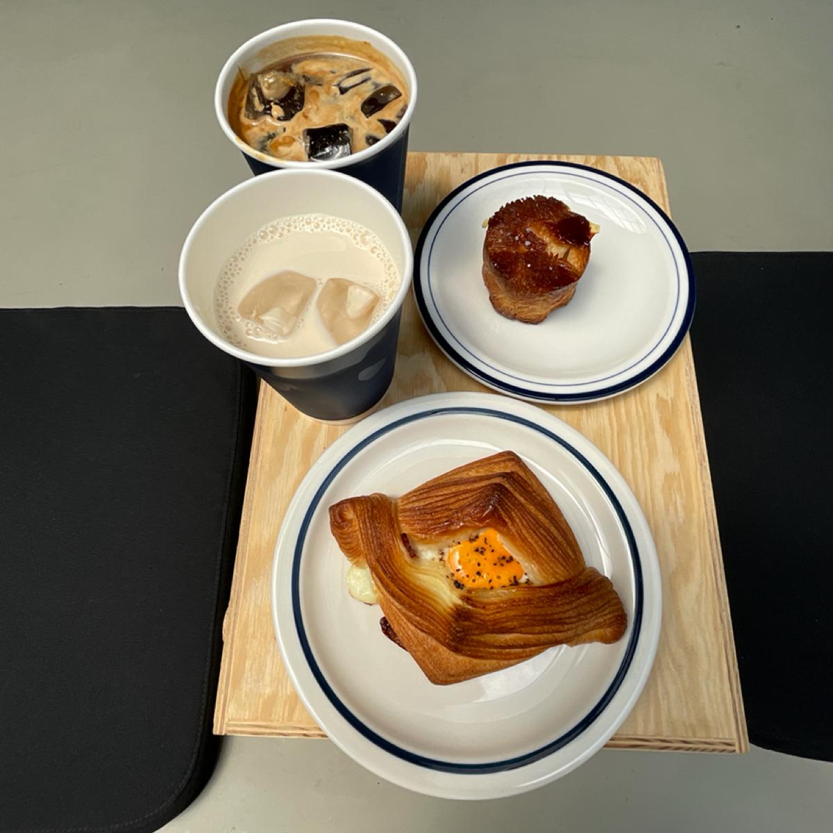 It seems to be a store that just opened not long ago, and there are a lot of people during weekday lunchtimes. The seats are quite limited, and it operates on a first-come, first-served basis. You queue to choose your croissant and order your drinks, then wait to be called to pick up your food, and finally, you need to place your trays and utensils in the tray return area.