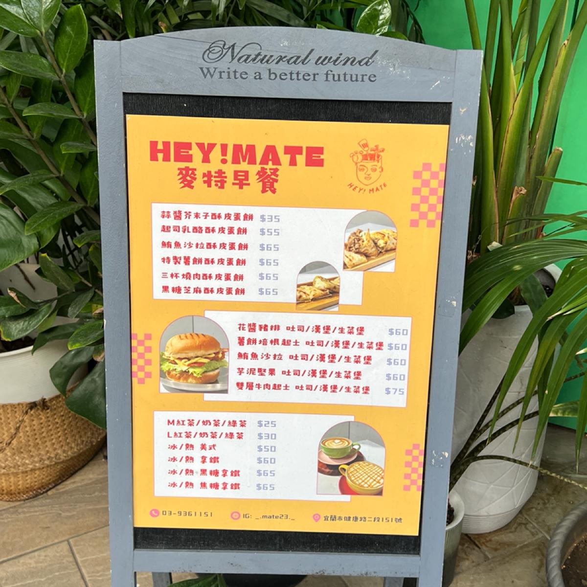 Hey Mate Breakfast is a popular brunch spot in Yilan City. The restaurant is pet-friendly, but if you're driving, you might need to spend a little extra time looking for a parking spot. The business is good, and the atmosphere in the restaurant is fairly relaxed.