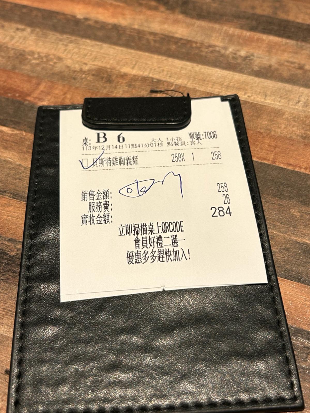 I ordered the Best Chicken Breast Pasta, which is sautéed. I found the flavor a bit too light for a sautéed dish. Although there’s quite a bit of garlic visible, the garlic flavor is not very strong. The pasta was cooked just right, with a good texture, and there weren’t many broken noodles. The chicken breast had been seared beforehand, which gave it a nice aroma and it wasn't dry.