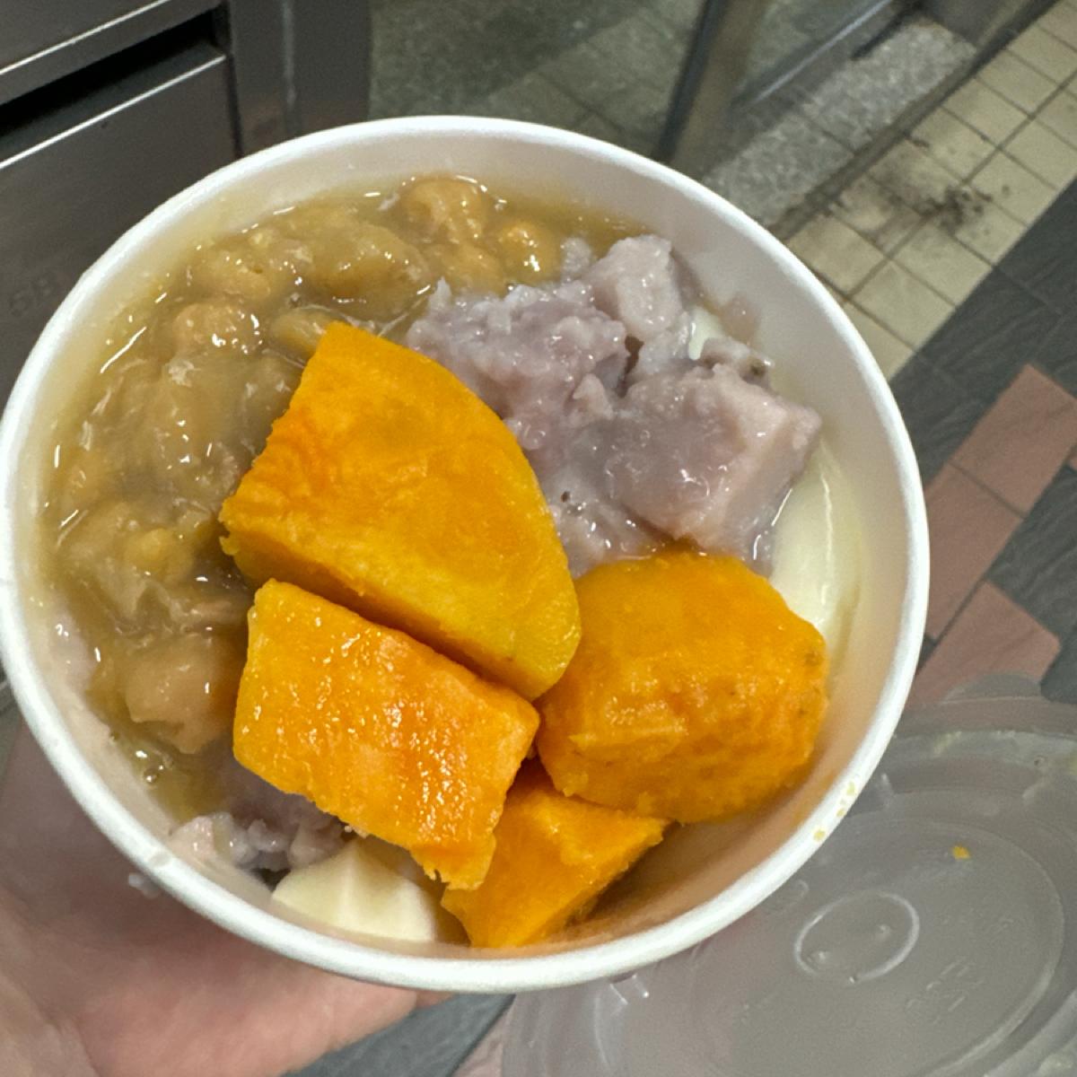 This time I mainly took out the ice tofu pudding - 55 - no added sugar - the tofu pudding itself is very smooth without any graininess, and it has a quite noticeable natural bean flavor with a hint of sweetness. I chose 3 toppings: snow lotus seeds, taro, and sweet potato. The sweet potato is slightly sweet and in chunks. The snow lotus seeds are well-cooked and have a soft texture. The taro is also very creamy. Overall, they are generous with the toppings!