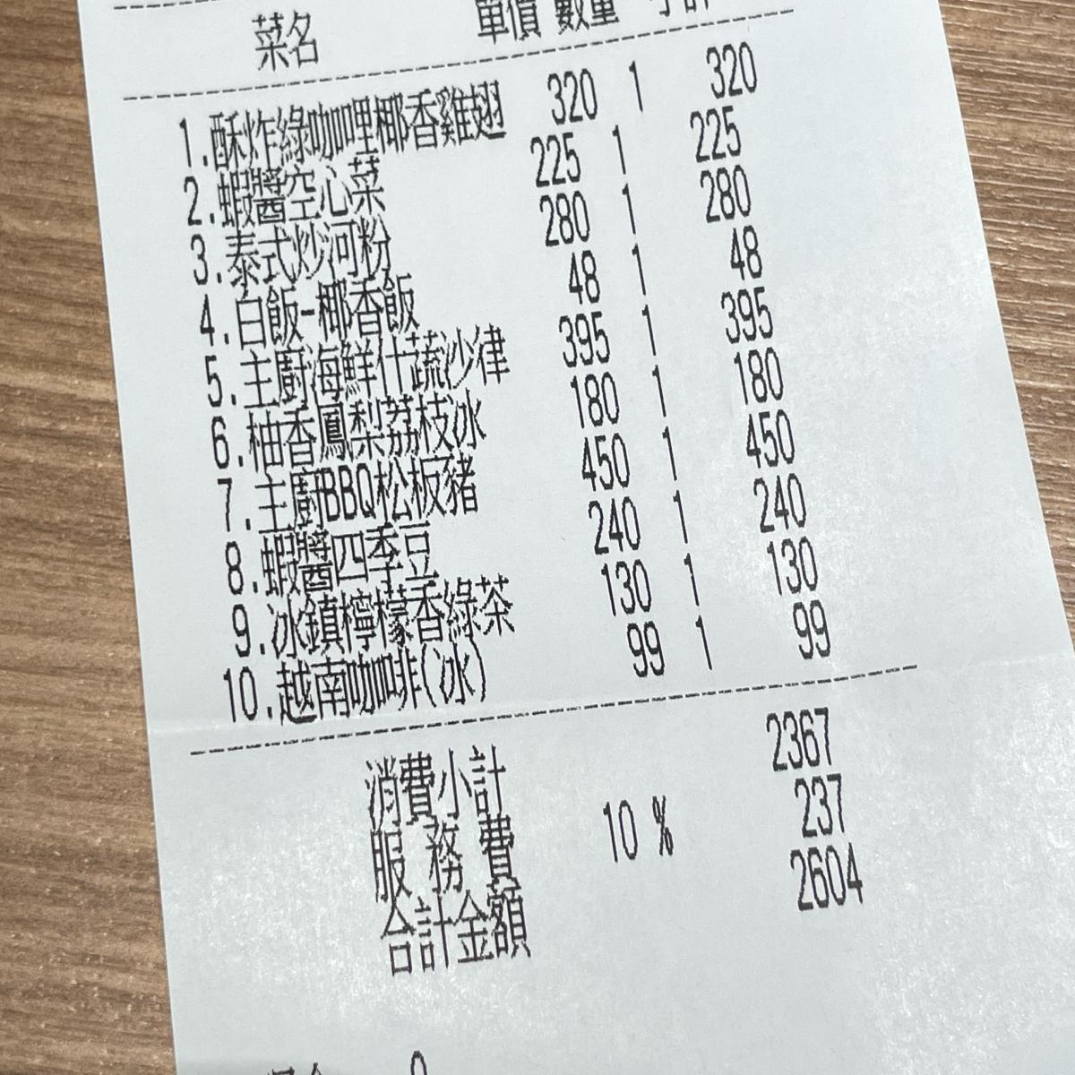 Every visit, I must order the shrimp paste dishes, Matsusaka pork, appetizer salad, and stir-fried rice noodles (which I highly recommend!). I usually also order green curry chicken, but this time I specially tried the crispy curry coconut chicken wings. The crumbly bits go well with rice; the coconut flavor in the wings is subtle, but the meat is tender and juicy, with about six wings on a large plate.