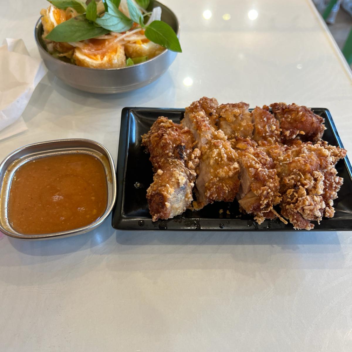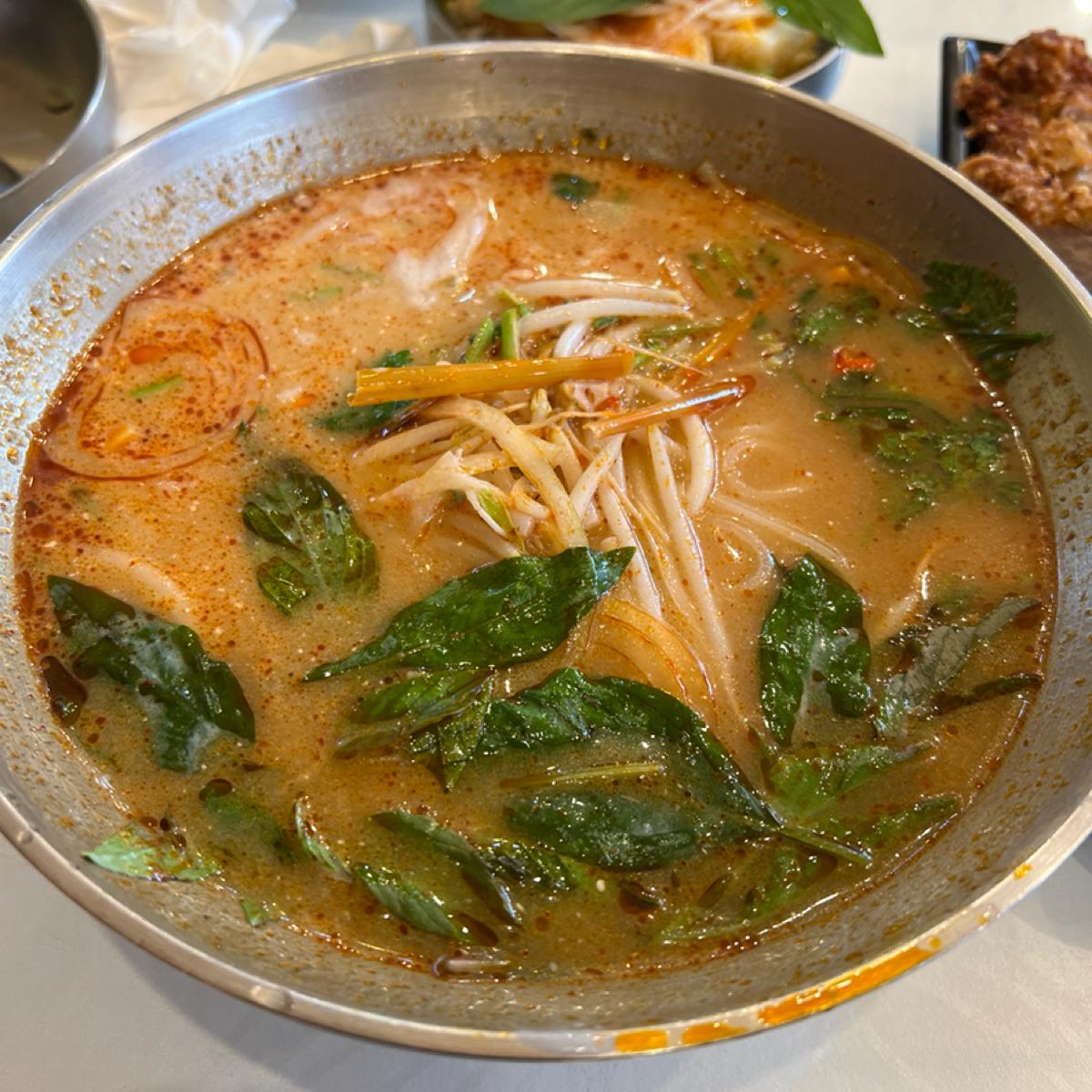 The lemongrass chicken in the pho is deep-fried, with a crispy skin and a rich aroma. Paired with the tangy and savory broth, the overall flavor is refreshing and appetizing, making it hard to stop at just one bite. The unique feature of the rare beef pho is similar to how Tainan beef soup is served: the raw slices of beef are briefly cooked in the boiling broth, maintaining a tender and slightly rare texture that feels like eating a Vietnamese version of Tainan beef soup. The broth is clear and carries the sweetness of the beef, which shows sincere effort.