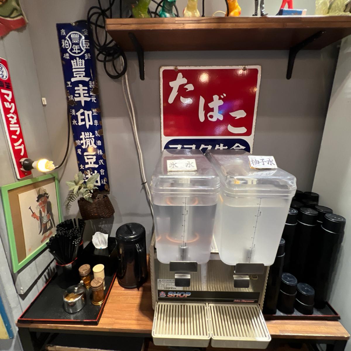 There are tableware you need to take by yourself after you sit down, and ice water and grapefruit water are also provided.