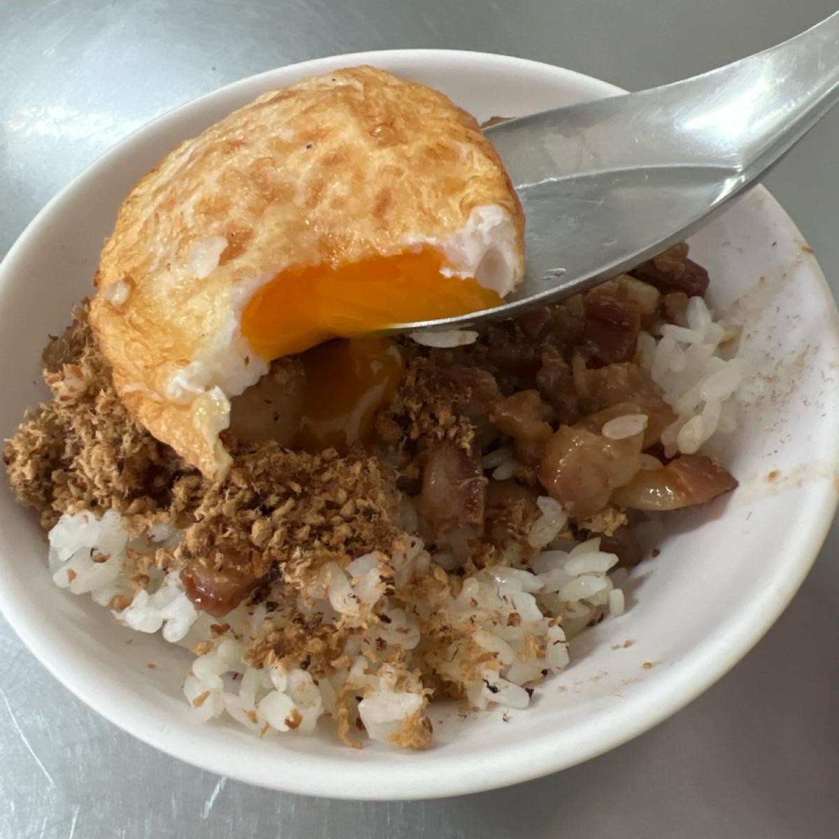 The Qianjin Pork Rice is on the fattier side, with a sauce that leans towards a slightly sweeter Southern Taiwanese flavor. You can appreciate the comforting aroma of the gravy and the unique gelatinous texture from the fatty parts of the meat, giving it a slightly sticky mouthfeel. Pairing it with the restaurant's special fish floss adds an extra layer of texture but also takes away some moisture from your mouth, making you slightly thirsty after finishing the whole bowl. Next time, I might choose the version without fish floss. The soft-boiled duck egg is the soul of the pork rice. Gently breaking the slightly firm golden egg yolk allows it to flow out, and wrapping the rice grains with a bit of the yolk provides another level of enjoyment. I personally recommend everyone add the soft-boiled duck egg; it's an excellent pairing with the pork rice!