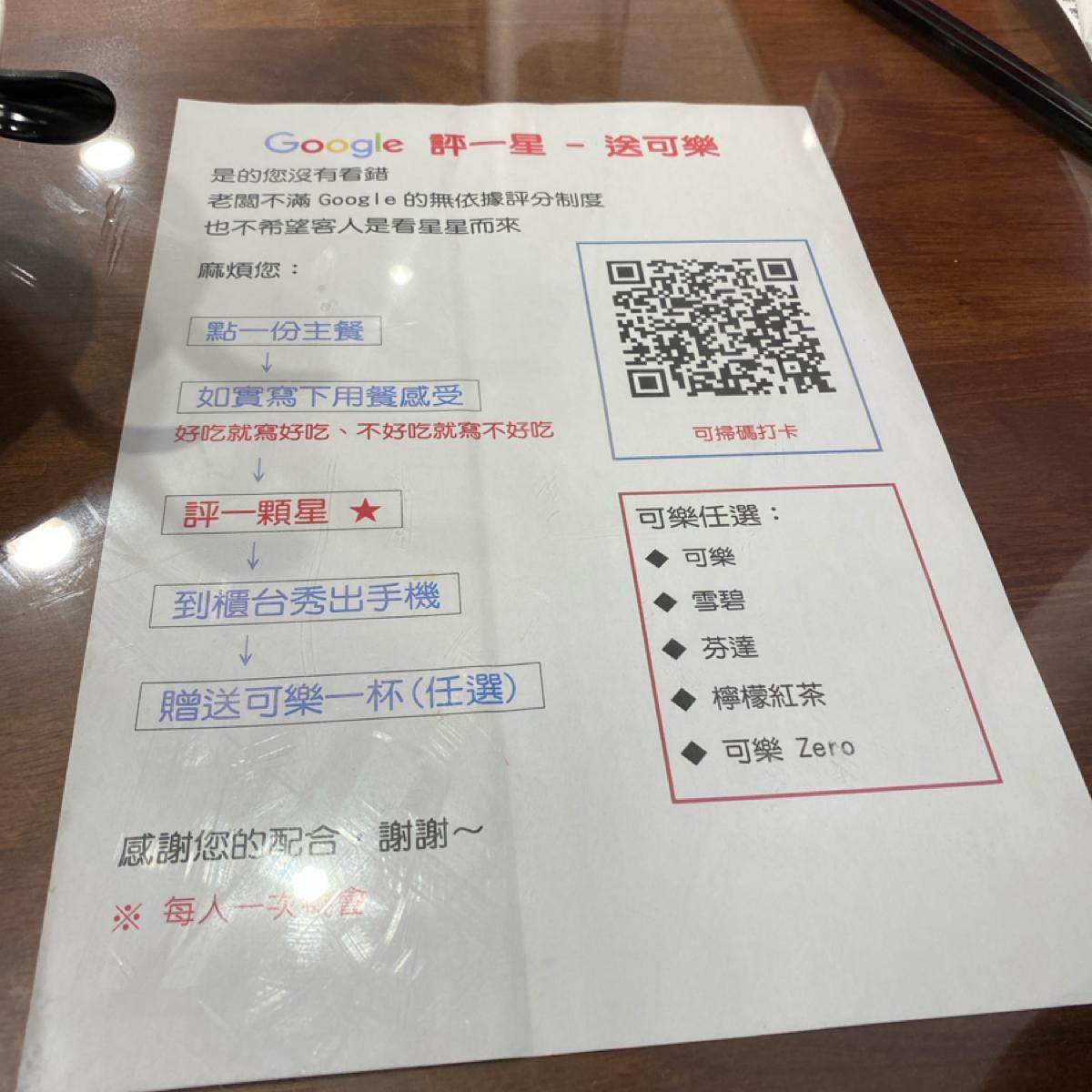 It seems that the boss has not believed in Google reviews for a long time. The one-star review and free drinks should be a normal activity, but it has never been used🫣