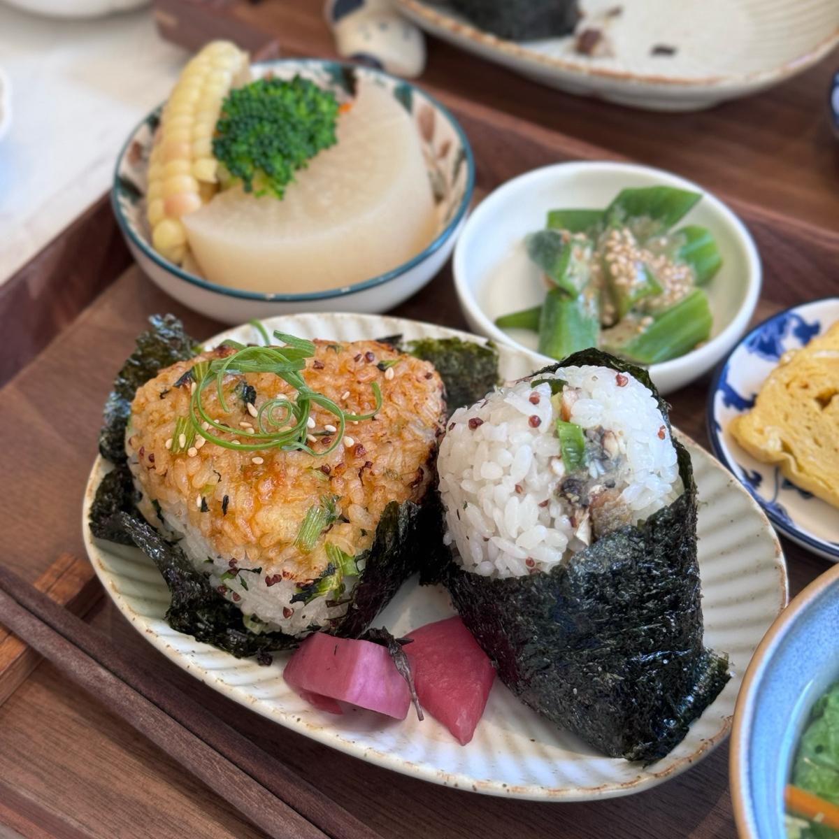 The set meal comes with two rice balls, and you can mix the flavors.