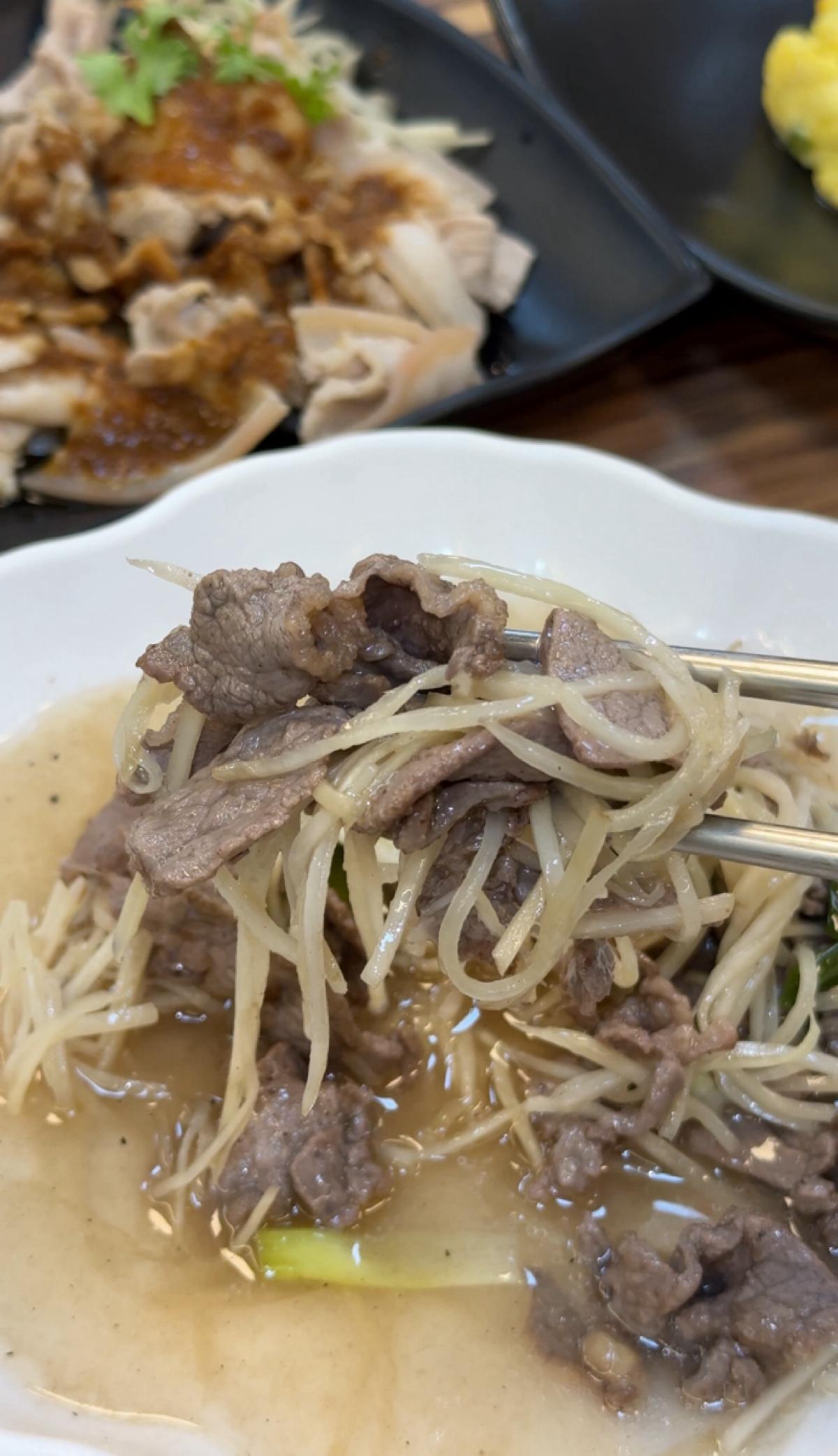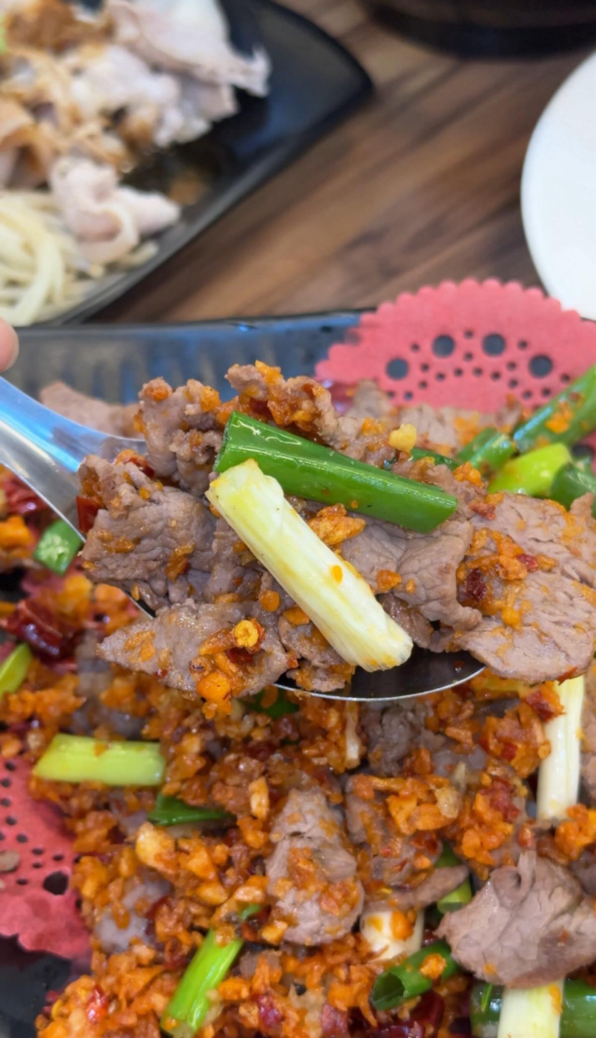 The beef is fresh, and the texture is incredibly tender. The three-cup beef and scallion burst beef are excellent accompaniments to rice, while the Thai-style beef is tangy and refreshing, stimulating the appetite. For those who don’t eat beef, there are options like garlic pork and various side dishes available.