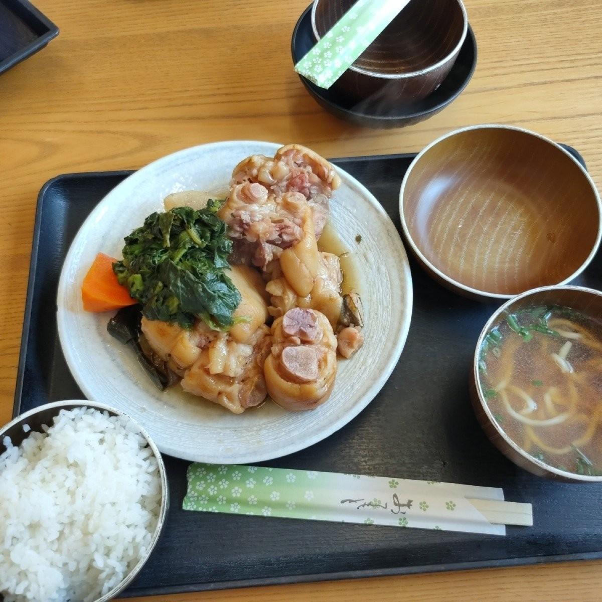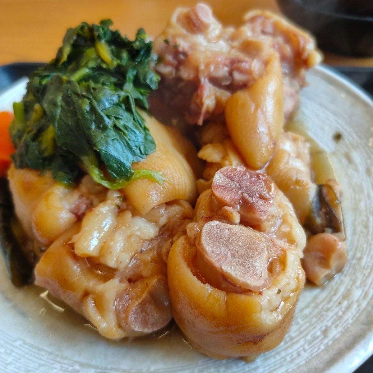 Pork Leg Set Meal: About 6 pieces of pork leg, with fried tofu, red/white radish, kelp, and an unfamiliar green vegetable (which I'm not used to), plus a piece that looks like konjac, a bowl of rice that’s perfectly cooked, and a mini bowl of soba noodles. The pork leg is braised until very tender and falls apart easily, also without any pork smell. Personally, I really liked it; it’s so good.